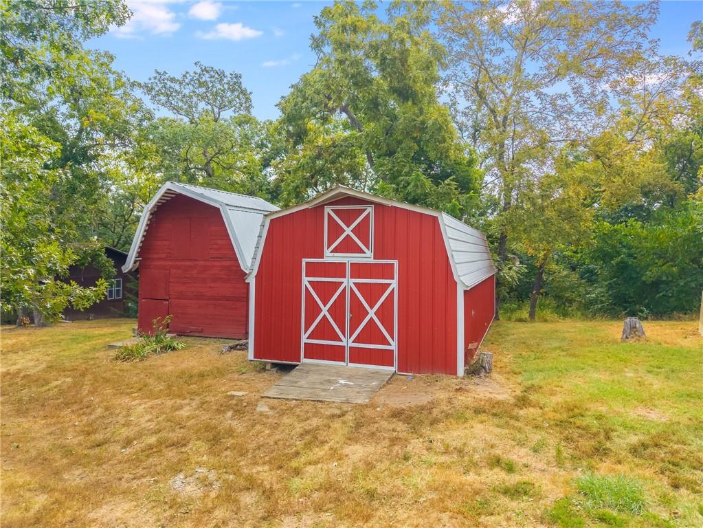Looking for an amazing retreat not far from the city? Want to be able to hunt on your own 13 acres of land? As you drive through the stone entrance and wind up the treelined drive you already feel the stress leave. When you come into the clearing you see a 2 bedroom log cabin overlooking rolling hills. The beamed ceiling and log walls take you back to an era where things were slower and more peaceful. Whether you want to live here permanently in peace or use it as a retreat this home will meet your needs. There are also two large outbuildings on the property.
