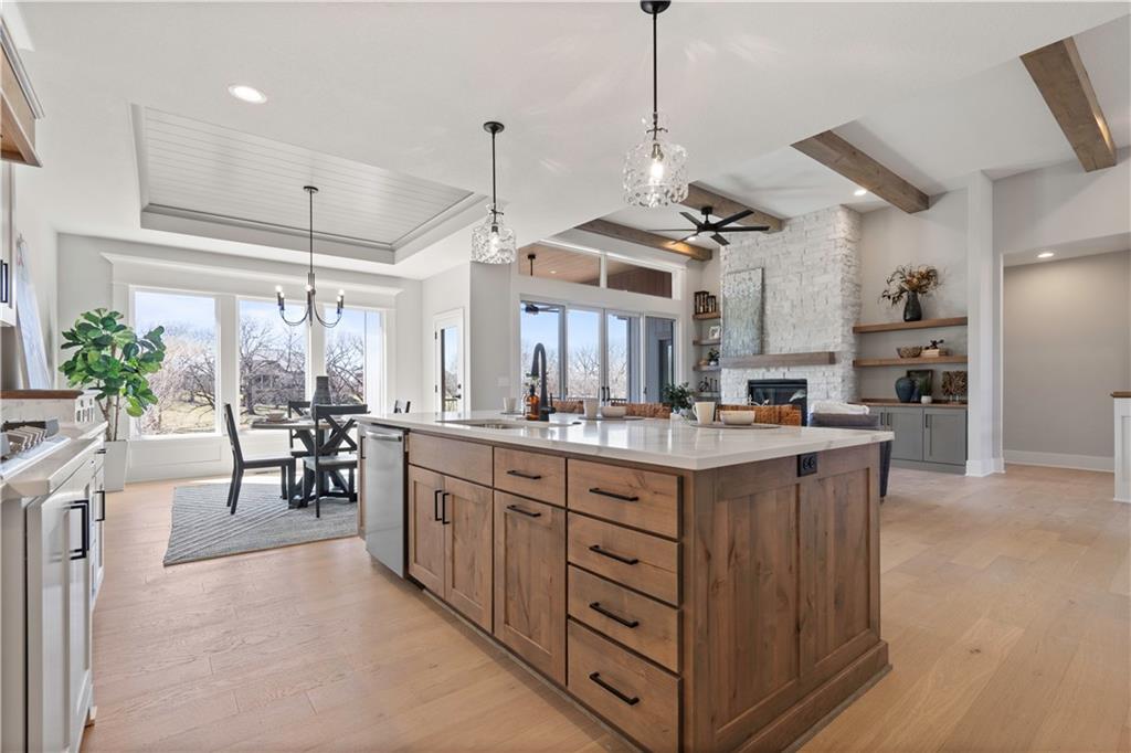 Nestled in the brand-new Woodland Oaks Subdivision, this stunning reverse 1.5-story home, built by Walker Custom Homes, is designed for luxury and functionality. Step inside to find soaring 12-foot ceilings and a cozy fireplace in the spacious Great Room, where abundant natural light creates a warm and inviting atmosphere. The gourmet kitchen features a center island, plentiful cabinetry, and a large walk-in pantry—perfect for everyday living and entertaining. Retreat to the elegant primary suite, complete with a freestanding soaking tub, oversized walk-in shower, dual vanities, and an impressive walk-in closet. A second main-level bedroom and full bath offer flexibility for guests or an in-home office, while the convenient laundry room is located just off the garage entrance. Downstairs, the expansive walk-out lower level is built for entertaining, boasting a large rec room with a wet bar, two additional bedrooms, a storm shelter, and generous unfinished storage space. Living in Woodland Oaks means enjoying access to premier area amenities, including nearby Lake Jacomo and Legacy Park, with its state-of-the-art community center, amphitheater, disc golf course, miles of walking trails, and sports facilities for all ages—all just steps from your front door. Home is under construction and final pricing is subject to change. Pics of former model. The specification sheet will outline planned finishes for this property, and supersede any details, photos, drawings, or depictions used for marketing purposes on this listing.