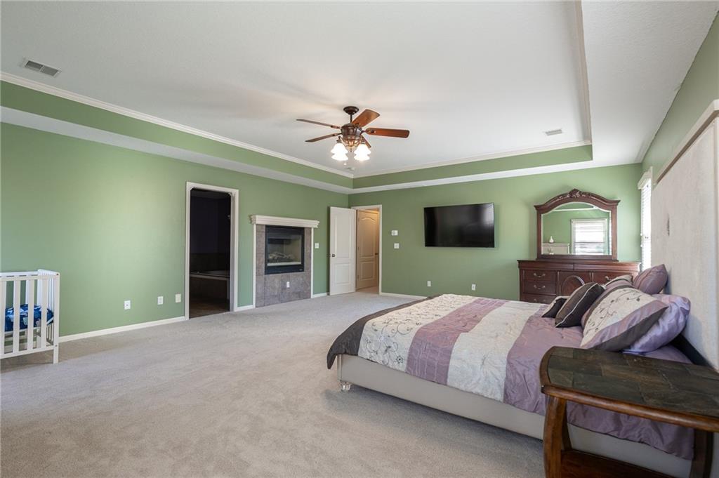 Motivated Sellers! Welcome to this inviting home that perfectly blends comfort, style and function. Designed for both relaxation and connection, the spacious layout offers open living areas ideal for entertaining or everyday life. The kitchen features stainless steel appliances, a breakfast bar, and a walk-in pantry, opening to a bright dining area where famiiy and friends can gather. The primary suite is a peaceful retreat with its own fireplace, luxurious en-suite bath, large walk-in closet, and convenient built-in ironing station. The cozy great room fireplace adds warmth and charm with tons of windows, while the finished basement provides additional space with a theatre room and large island and wet-bar. Step outside to enjoy a large fenced backyard, stone patio with built-in benches for entertaining. The extended three car garage provides extra storage or room for a boat. Major updates include exterior painted (2025), roof (2020), carpet (2019) and water heater (2023). Don't miss your chance to make this beautifully maintained home yours.