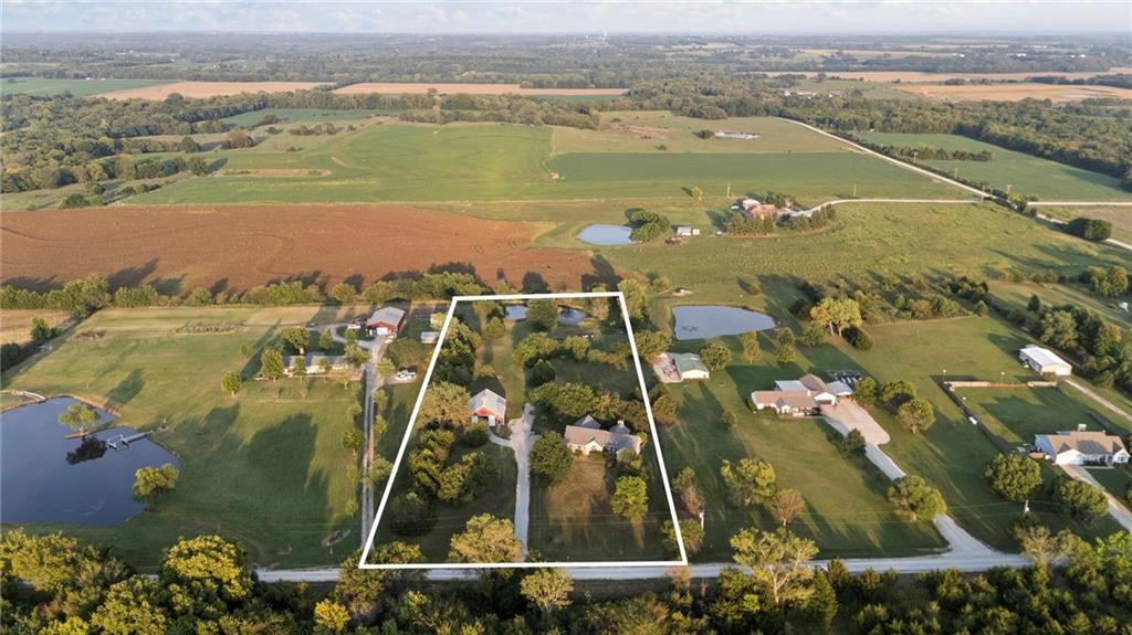 Looking for wide-open spaces and fresh air just outside the city? This ranch-style retreat offers peaceful rural living, just 10 minutes from Hillsdale Lake, one of Kansas' premier spots for boating, fishing, and enjoying nature. Inside, you’ll find 3 spacious bedrooms, 3 full bathrooms, plus a flexible non-conforming 4th bedroom—ideal as a home office, guest suite, or hobby space. The open floor plan and one-level layout, with a walk-out basement, make everyday living easy and comfortable. Step outside and take in the sweeping country views, enjoy the charm of a small private pond, and imagine the possibilities on this serene piece of land on 3.6 acres. Seller is currently updating siding and painting exterior home. Whether you're searching for your forever home or a weekend escape from the city grind, this property offers the freedom, space, and opportunity you’ve been waiting for.