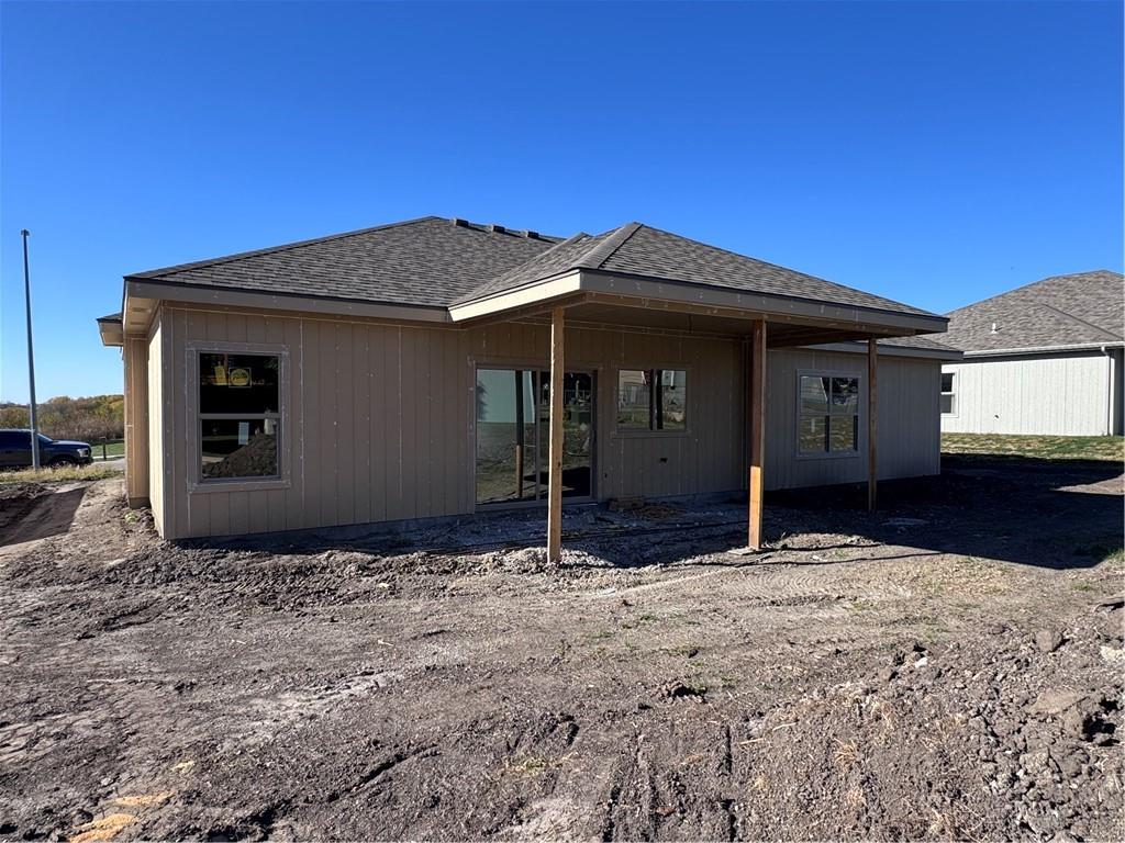 Brand New Construction – Small Town Living with Modern Comfort. Welcome to this beautifully built 3-bedroom, 2-bath home offering the perfect blend of quality construction and stylish finishes. Designed with a desirable split-bedroom floor plan, this home provides privacy and function for today’s lifestyle. Step inside to find warm wood floors, custom cabinetry, and solid surface countertops that highlight the craftsmanship throughout. The kitchen, dining, and living areas flow seamlessly, creating a comfortable space for everyday living and entertaining. The bedrooms are thoughtfully finished with carpet, while the bathrooms feature elegant tile work for a polished look. Additional conveniences include a dedicated laundry room and a spacious 2-car garage. Enjoy the outdoors on your covered patio overlooking the level yard, perfect for relaxing or play. Located in a welcoming subdivision with easy access to Highway 36, this home offers the charm of small-town living with quick routes to wherever you need to go. Don’t miss your chance to own this brand-new home with beautiful features inside and out!