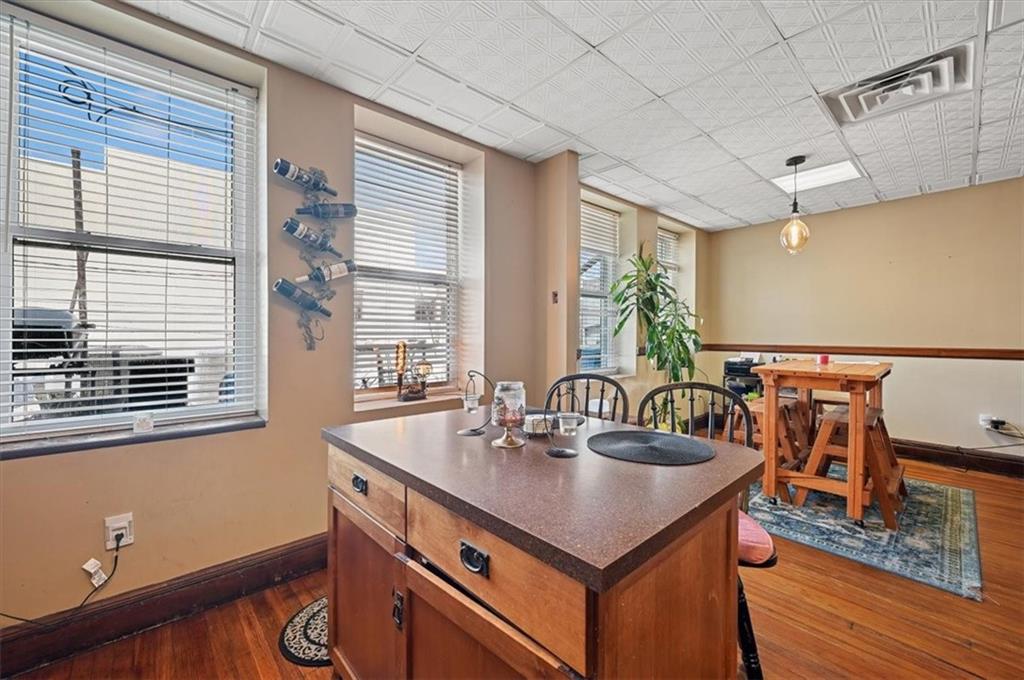 Located in historic Downtown Leavenworth, this building features 3 levels of usable space. The main level storefront is updated with 2,734 square feet to include new paint and flooring, 2 half bathrooms, one for public and one for employee use and a parking space in the back off the alley. The upper level is 1,920 square feet of residential space with 4 bedrooms, a full bathroom with both stand up shower and a corner jacuzzi tub, laundry room with dryer that stays and kitchen with all appliances that stay! The basement is very clean and usable for storage, inventory or as a work space. Separate electric and gas meters. New windows in the back, new AC units, new sewer line, some new plumbing and electrical! Great opportunity to live above your business or as an investment with rental income of $3,500+ per month!