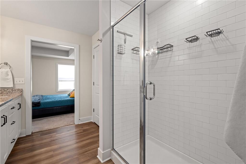 Located in the desirable Woodland Creek community, this beautifully maintained 4-bedroom, 3-bath home combines modern design with everyday functionality. The open-concept main level features a bright living area with a linear fireplace, large windows, and luxury vinyl plank flooring, flowing seamlessly into the kitchen with granite countertops, stainless steel appliances, and a spacious walk-in pantry. The primary suite offers a walk-in closet, double vanity, and private water closet, while two additional bedrooms on the main level provide flexibility for various needs. The finished lower level includes a large family room, fourth bedroom, full bath, and generous storage. Outdoor highlights include a fully fenced backyard, custom deck stairs, and mature lawn. Situated within the Smithville School District, residents enjoy a growing neighborhood with a community pool, convenient highway access, and a welcoming sense of connection. This home is move-in ready and thoughtfully upgraded for modern living.