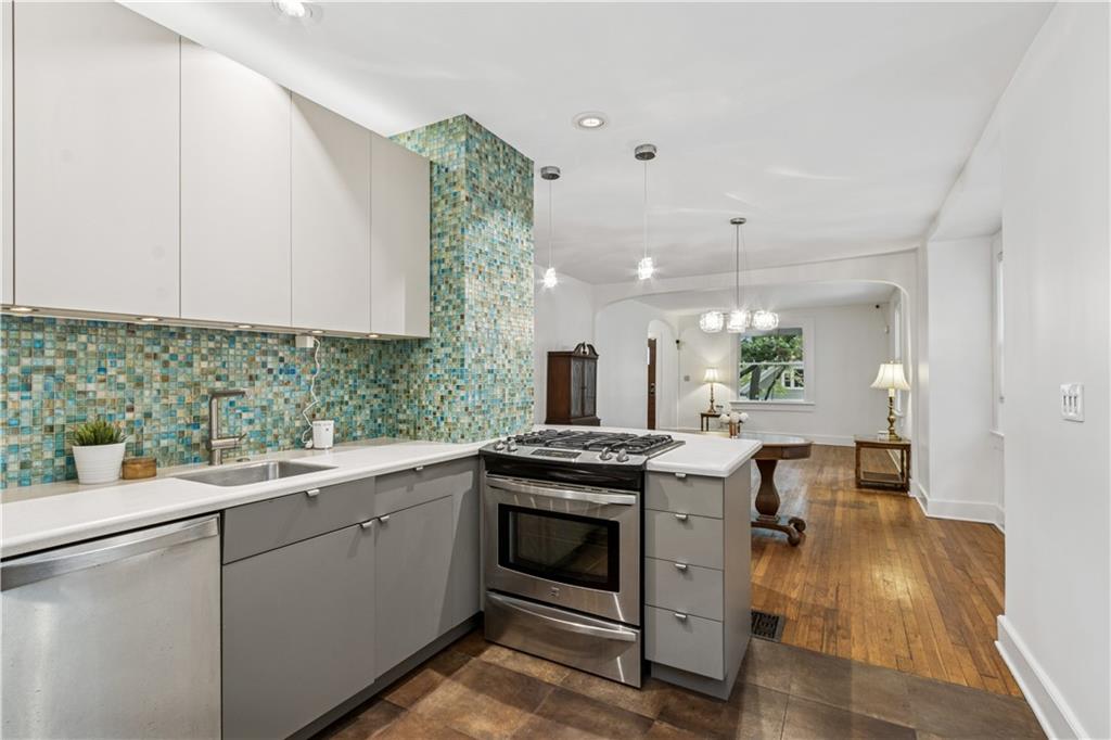 Charming Brick & Stucco Bungalow with Modern Updates! Inside, you'll find an open, airy floor plan featuring original hardwood floors and an abundance of natural light that fills the space. The remodeled Kleweno kitchen (2014) is a true highlight, offering a convenient breakfast bar that’s ideal for quick meals or entertaining guests. The spacious entryway is complemented by generous closet space, providing ample storage. The front bedroom boasts a large walk-in closet, perfect for all your wardrobe needs. All appliances are included, making moving in a breeze. Tons of updates including brand-new 97% efficient 2 stage HVAC, fresh paint throughout, new windows in living room, new Pella exterior doors, Roof 8 years. Relax and take in the scenic views from the inviting front porch, perfect for unwinding after a long day or enjoy the fenced back yard! Located in a highly sought-after area, this home is just a short distance from the vibrant Plaza and Westport, offering easy access to shopping, dining, and entertainment.