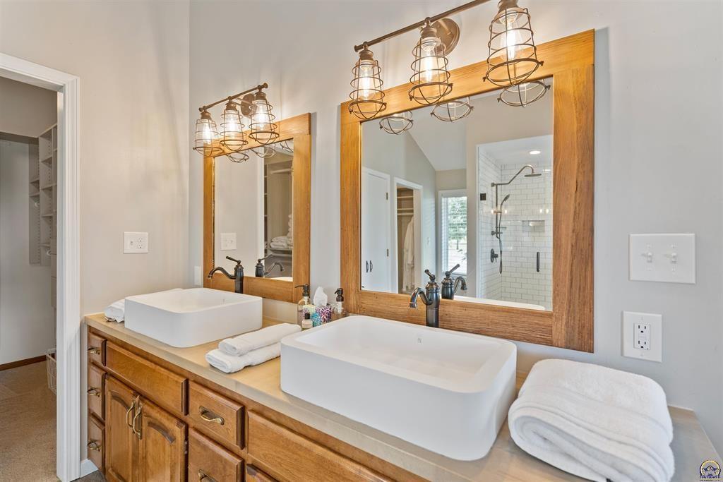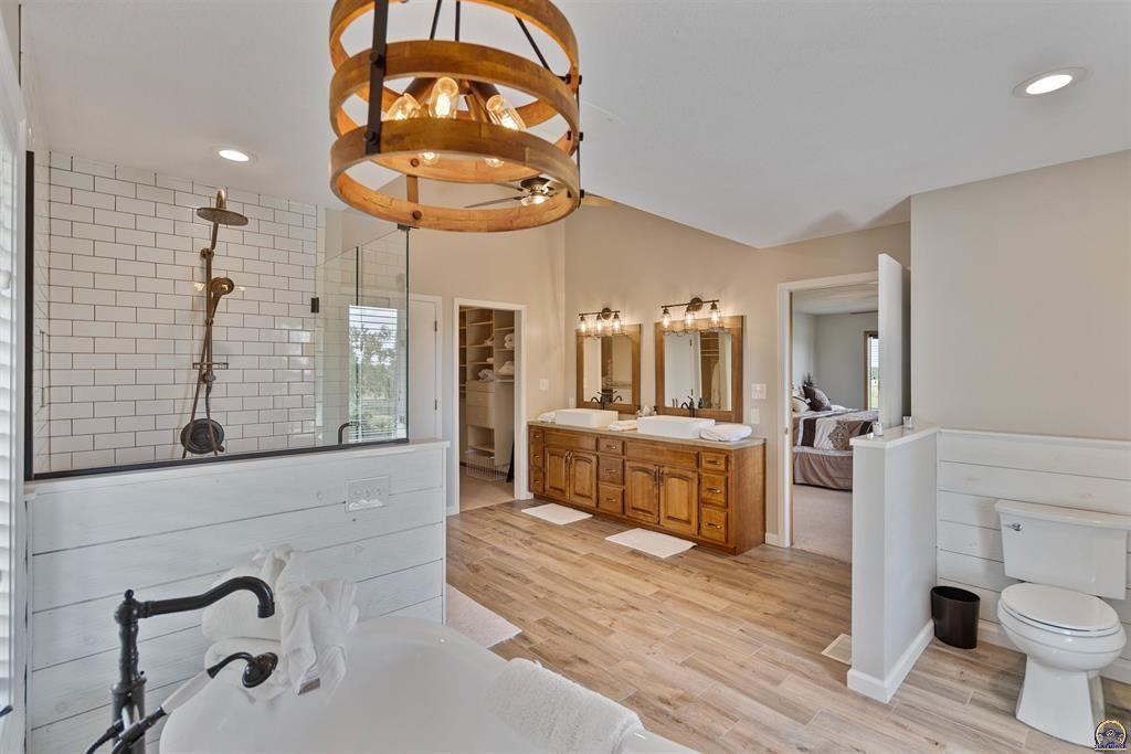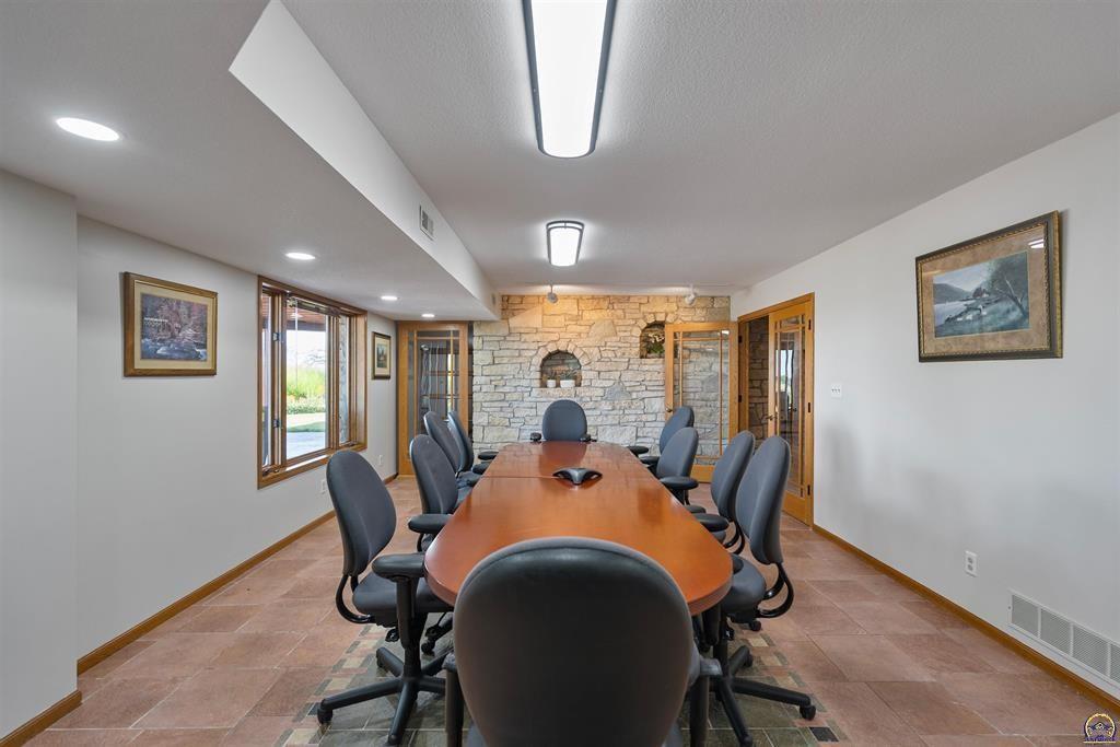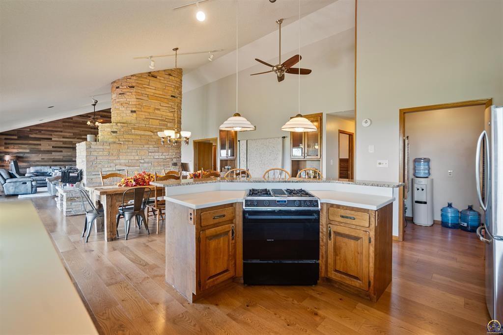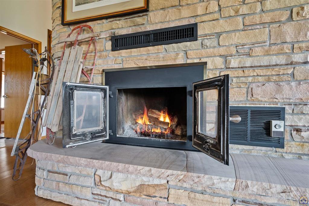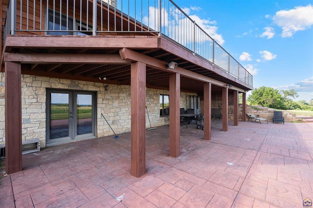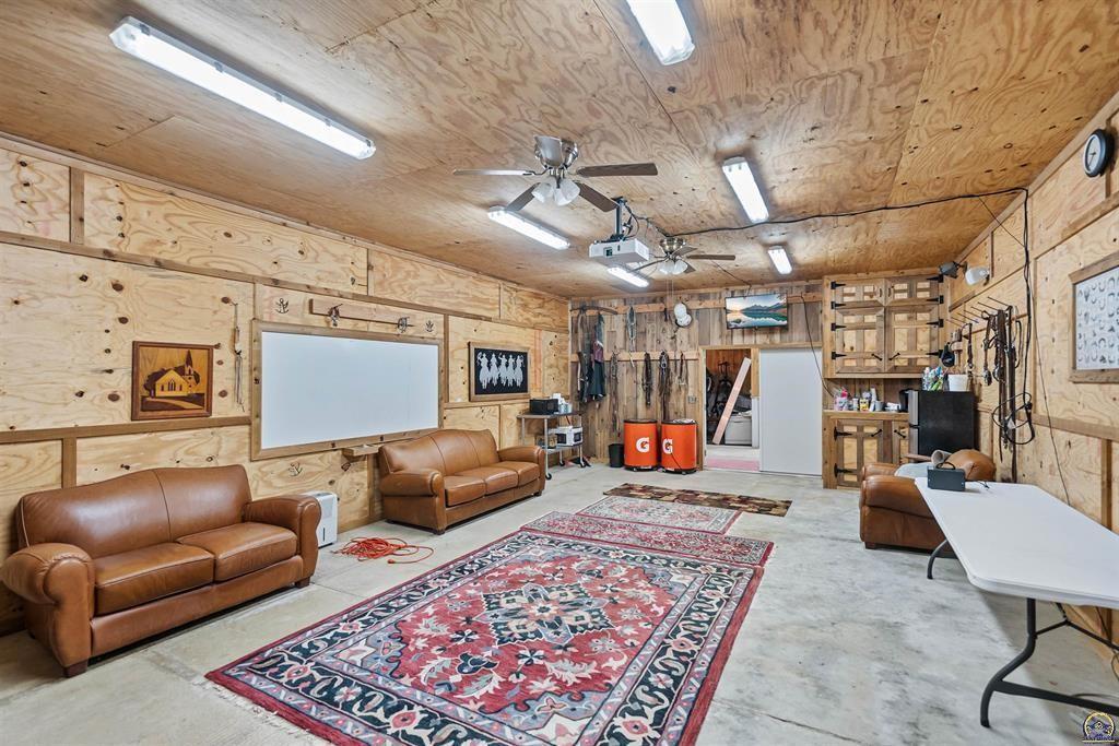 Stunning 18-acre country retreat overlooking Perry Lake with endless potential for an agricultural oasis, Airbnb, or event venue. This 5,000+ sq ft ranch-style home offers 4BR, 3.5BA, vaulted ceilings, 2 stone fireplaces, and a chef’s kitchen with walk-in pantry and island. The luxurious primary suite has a spa-like bath and dual closets. Also, the Walk-out basement features a 2nd kitchen, family room, office/conference space, and ample storage. Outdoor living includes a massive deck, covered patio, and spacious fire pit area perfect for entertaining. Nearly 9,000 sq ft of garage/workshop space includes a 30x60 shop and a 51x120 outbuilding with heated/cooled office and full bath. The property is Zoned Farm & Ag with 5 animal shelters, 4–5 fenced pastures, 6 hydrants, horse arena, and 2 RV hook-ups. Ideal for weddings, retreats, or hobby farming. This is the perfect home to live, work, and host with ease.