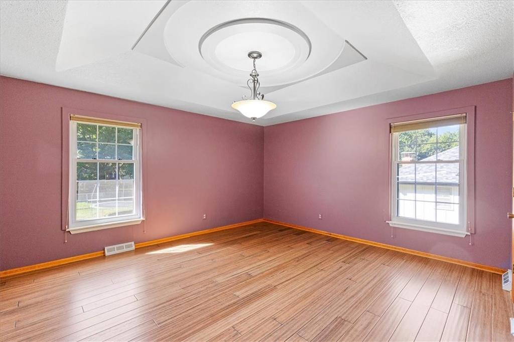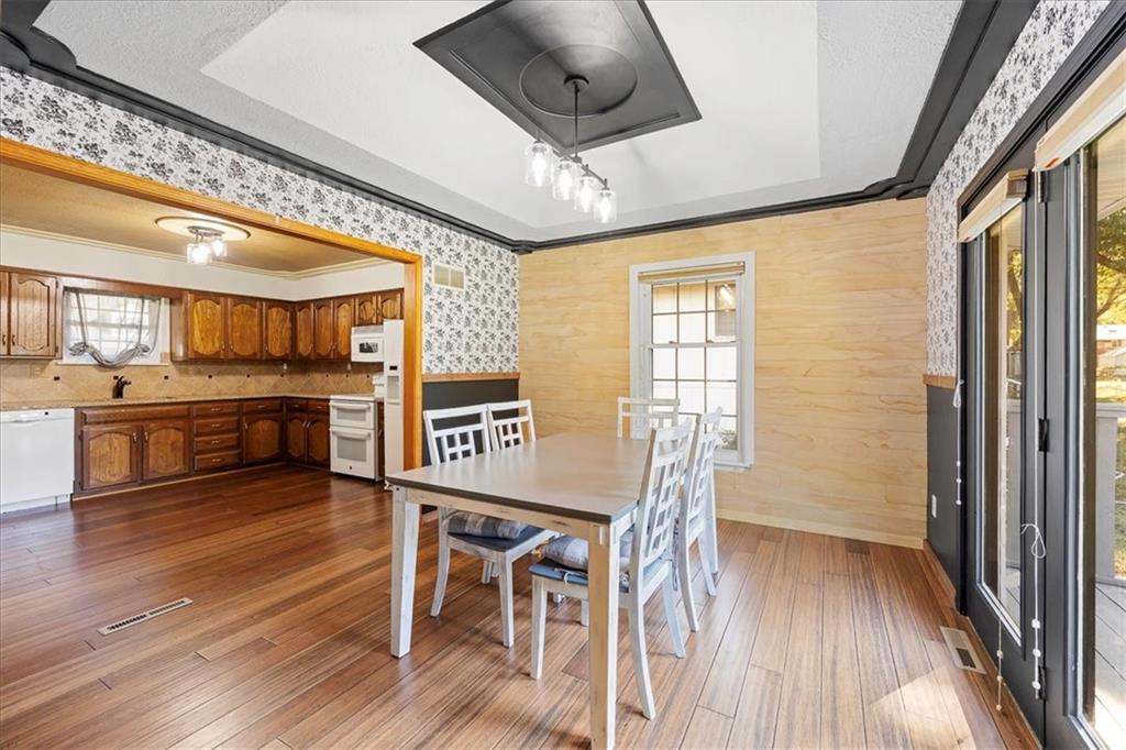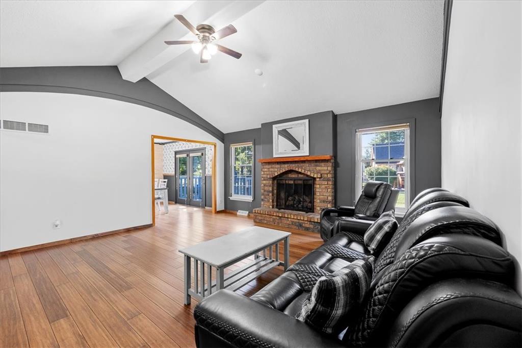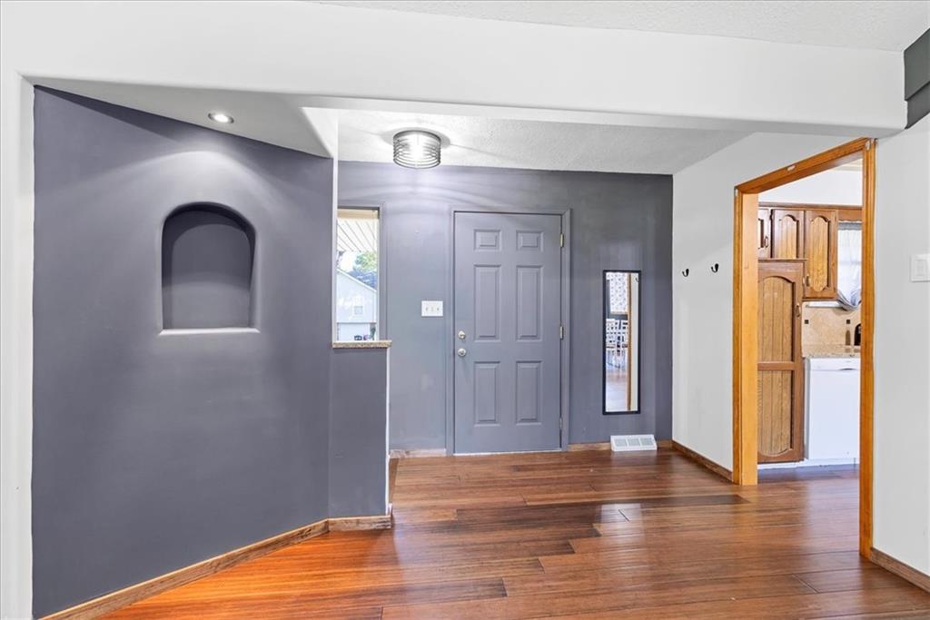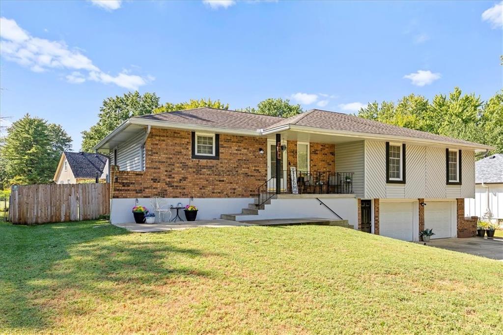 NEW PRICE IMPROVEMENT! Welcome to this updated well maintained raised ranch in a great location close to everything you need! Beautiful hardwood floors great you as you enter into the home & the light filled living room with vaulted ceilings, a ceiling fan & brick wood burning fireplace. Hardwood floors continue throughout the home into the functional kitchen with granite counters, lovely stained cabinets & all the appliances stay. Kitchen opens up to the dining space with updated lighting, paint, wall paper & lots of natural light from the atrium door that leads to a deck, patio & large fenced backyard. Down the hallway is the updated hall bathroom with shower & tub, beautiful tile, new toilet, vanity with soft close drawers & convenient space for your washer & dryer. Three bedrooms including a large primary bedroom with walk in closet & updated primary bathroom including vanity with soft close drawers, new toilet & large tiled walk in shower. Carpeted stairs lead you down to the family room with fireplace, half bath, a non conventional 4th bedroom that includes a walk in closet. There's an additional flex room for an office, storage, craft room & a concrete safe room or additional storage. New tankless hot water heater provides endless hot water for the entire family. Large 2 car garage with openers & a driveway with extra parking space. Seller offering $1,000 towards new flooring for lower level if desired! Let's make this your new home in this desirable neighborhood close to parks, schools, shopping, restaurants & highways!