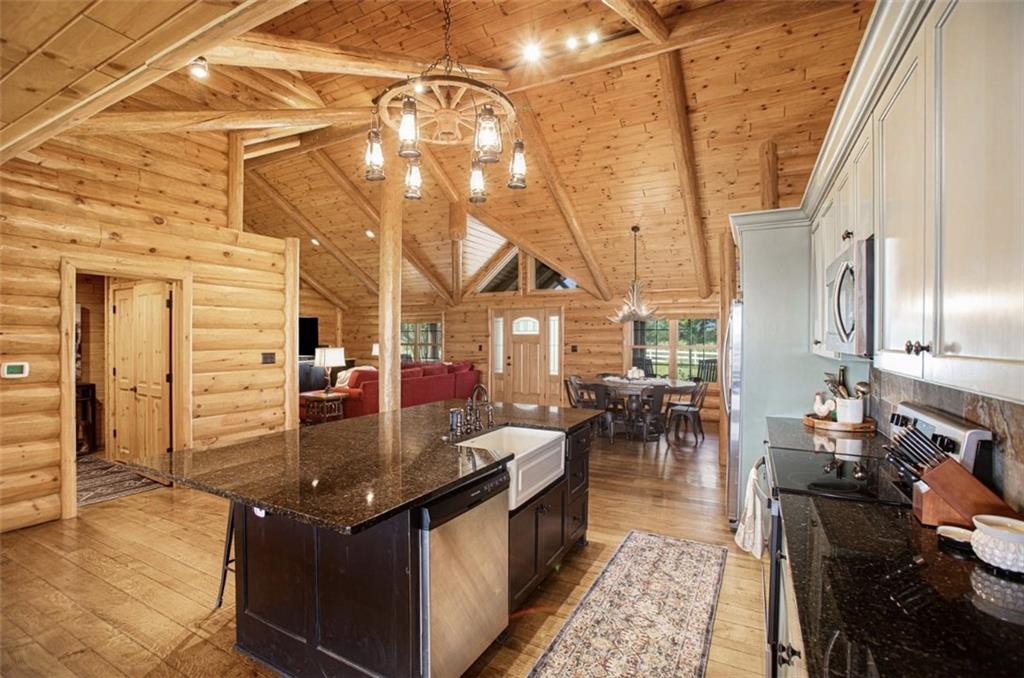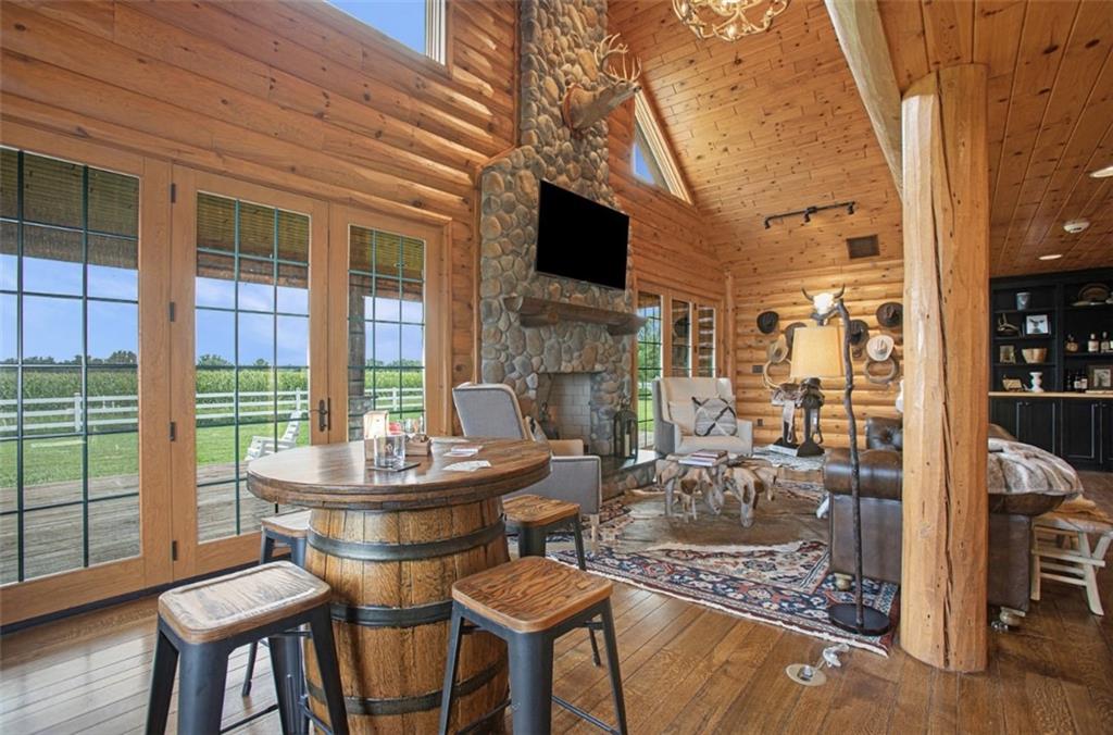 Discover the charm of rustic living at 19295 Highway 52 in Pleasanton, KS. This beautiful log cabin-style home is set on a picturesque 15-acre parcel, offering a perfect blend of natural beauty and modern comfort. The residence features 4 bedrooms and 3 bathrooms, spread over 3,149 square feet of living space, each corner thoughtfully designed with natural wood details and expansive windows that fill the home with light. Inside, enjoy the open-concept layout that seamlessly connects the living, dining, and kitchen areas—ideal for both everyday living and hosting gatherings. The kitchen, equipped with modern amenities, provides a functional space for culinary enthusiasts. The expansive acreage surrounding the home presents endless opportunities for outdoor enjoyment. The land has a beautiful tree line to the west, offering privacy and a sense of seclusion, yet ample open space invites recreational activities. Additional structures include a 40x56 pole barn, a 42x56 barn, and a 8x12 shed, providing versatile options for storage or hobby uses. This log cabin retreat in Pleasanton is more than just a home; it’s a lifestyle choice, inviting you to experience the tranquility and beauty of rural living with the convenience of modern amenities. Explore the potential of this unique property today.