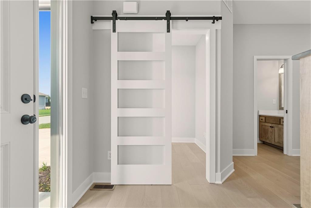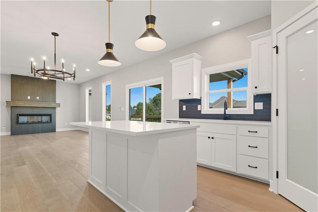 “The Carlyle", the latest innovative floorplan from Dave Richards Homebuilding, INC. The main level features a private office, open concept kitchen / family / dining area and a conveniently located half bath. You'll love the ample storage space in the U-Shaped kitchen design, which also allows for a sink with window overlooking the backyard! An island and walk in pantry complete the kitchen, which opens to the large dining area and big family room with fireplace and wall of windows offering lots of natural light. Upstairs you'll find four spacious bedrooms, including the owner's suite which features dual walk-in closets & a spacious bathroom with dual vanities. The large second full bath upstairs also boasts two vanities and shower/tub combo to accommodate your needs. Three other generously sized bedrooms finish out the upper level-- one with its own walk in closet. The walk in laundry room is also featured on the bedroom level, making that household chore as convenient as possible! Large Yard features an irrigation system, make lawn care much easier. Four Pillars offers walking trails, is serviced by the award winning Grain Valley School District, included the coveted Prairie Branch Elementary School. You're also within walking distance of Grounds Park-- which offers miles of walking/biking trails and a community lake. Exceptional quiet location, yet just minutes from the Adam's Dairy Shopping/retail corridor and easy access to I-70 for quick commuting around town. Beautiful home, fabulous community!