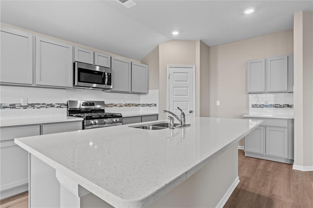The gorgeous Glenwood plan is full of curb appeal with its welcoming front porch and front yard landscaping. This one-story ranch-style home (slab on grade - no basement) features an open floor plan with 3 bedrooms, 2 bathrooms, and an expansive family room. Also enjoy a cozy breakfast/dining area, and a beautiful kitchen equipped with energy-efficient stainless-steel appliances, generous counter space, and roomy pantry. Plus, a wonderful covered back patio for entertaining and relaxing. Photos are of a previously sold model. Color selections, finishes, and options will vary.