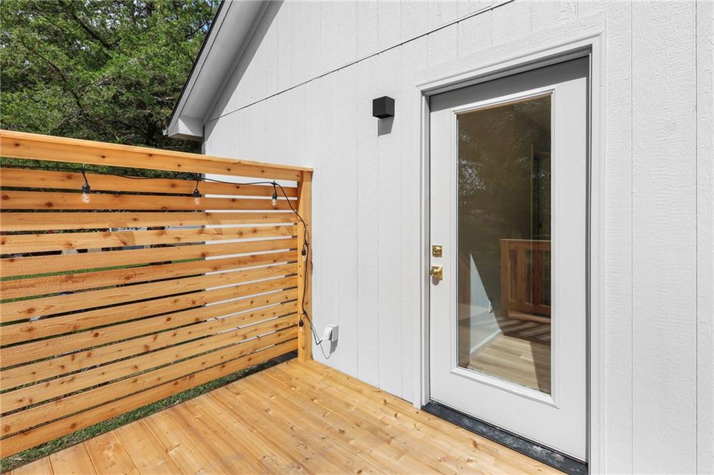 Welcome to this STUNNING 3-bedroom, 1-bathroom new construction home located on a newly developed street in Osawatomie, surrounded by a neighborhood full of exciting growth with new homes and remodels. Step inside to an open concept design featuring tall, vaulted ceilings, stone countertops, and custom pre-finished cabinetry. Every detail has been thoughtfully designed including upgraded LVP flooring, premium doors, custom wood windowsills that add warmth and character. Laundry is conveniently located right off the kitchen for everyday ease. This home offers true zero-entry living from the front with no steps, making it highly accessible. Rooms are spacious with large closets; HVAC has been upgraded from a traditional builder grade system to a more efficient system. Off the back, enjoy a spacious deck perfect for relaxing or entertaining, along with dedicated parking and a large, oversized shed for all your storage needs. The efficient floor plan provides a highly functional layout while still feeling bright and spacious. Just blocks away from the O Zone Fitness Center, Osawatomie High School, John Brown Park, Ball Fields, Tennis Courts and Outdoor Basketball, this home combines comfort, convenience, and modern style in an ideal location. Don't miss the opportunity to own a brand-new home in a community on the rise!