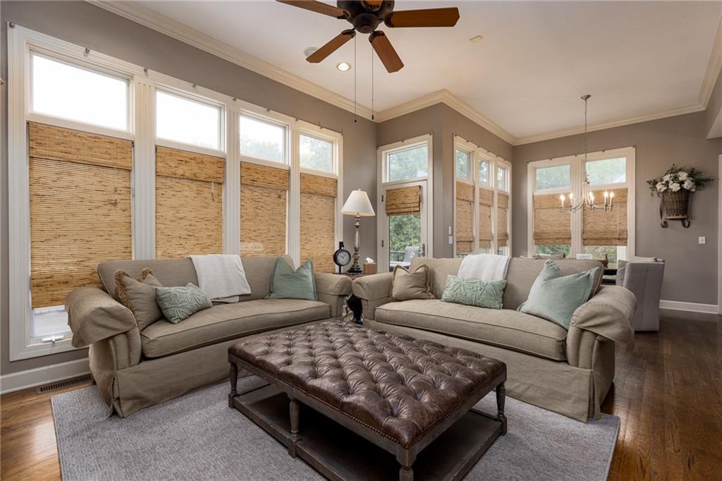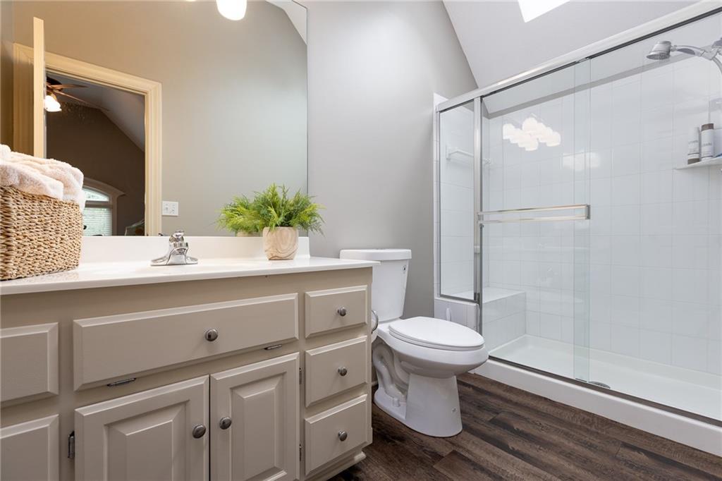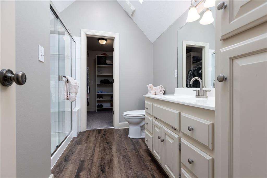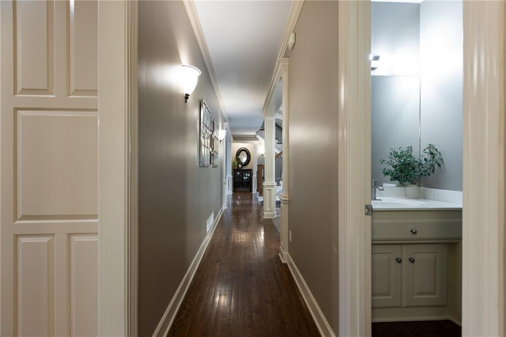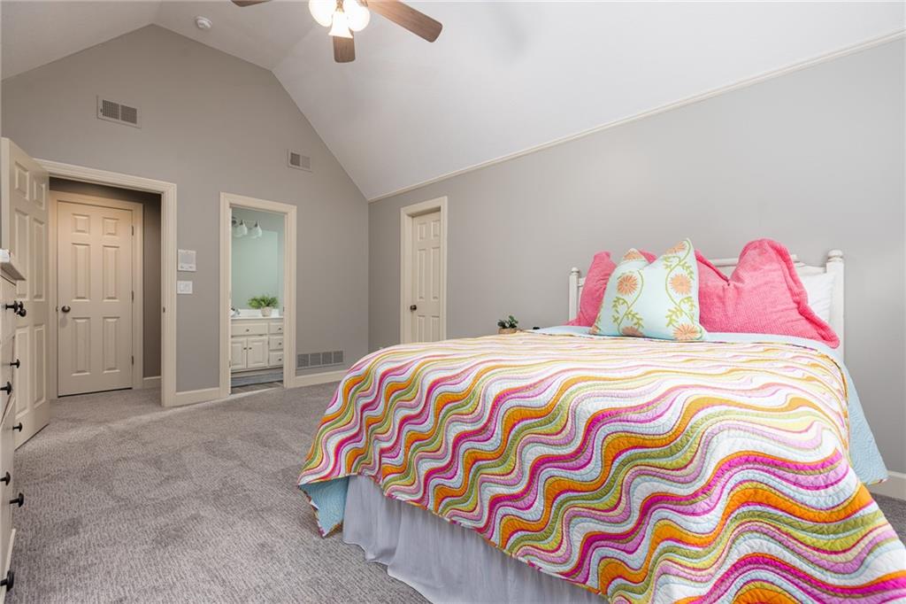 Beautiful 1.5 Story Home- This 4 bedroom, 6 bathroom home with a 3 car garage blends luxury and practicality. The spacious kitchen offers a large island, granite countertops, hardwood floors, and a gas oven & stove, opening to an office nook for convenience. Each bedroom features its own private bath, with the master suite boasting heated bathroom floors with a huge walk-in shower. The hearth room with fireplace is perfect for gathering, while built-ins and custom blinds add style and function. The finished basement includes a full bar, lots of areas to entertain, catch a game, or host a party, plus a SUSPENDED GARAGE for extra storage. Lower level also includes a bonus room that could be converted to a 5th bedroom, workout room, or 2nd office. This home has many unique touches and interesting details that you won't find in other homes, all set on a large, meticulously landscaped private lot. Home's exterior oozes curb appeal and invites you in. Thoughtful touches like dual staircase, a doggie bath in the laundry room, and oversized bedrooms complete this exceptional home. Picture yourself in this elegant home and popular community!