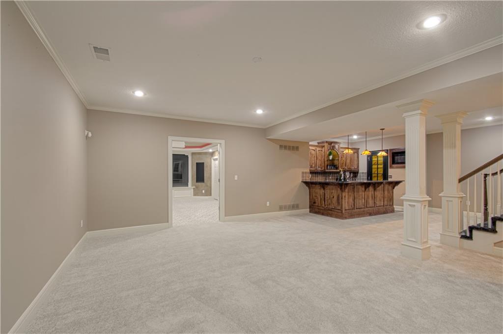 CHECK OUT THE VIDEO TOUR! MOTIVATED SELLER!! Gorgeous Light Filled Home w/ over 5000 sq ft of total living space! Perfect home for Entertaining! Soaring ceilings & plantation shutters throughout Main living area! Beautiful Hardwoods & Tons of Custom Molding! Huge Chef's Kitchen w/ incredible storage, oversized walk in pantry, Stainless steel appliances- double ovens, gas cooktop, microwave drawer- custom cabinets & Kitchen Island. 4 Fireplace-Hearth Room, Great Room, Primary Bedroom & Recreation Room in basement! Beautiful Main Level Owners Suite w/ HUGE walk in closet, & luxurious bath!!Main Level Office has Acoustic Wood Slat Wall Paneling. The 2nd level has 3 Large bedrooms w/ walk in closets & bathroom access. 2nd Floor Loft area! Basement Theatre room has 75 inch SONY TV --Perfect for watching Football Games or Movies! Recreation Room has fabulous wet bar w/ dishwasher & wine storage. The lower level bedroom is perfect for guests or as a designated work out room! There is a walk in closet & bath access. Upgrades Galore- New 50 year lifetime roof with ice & water shield w/ transferable warranty, 6 inch gutters & leaf guards. Full outdoor lighting system! High End Sun Shade on backyard deck provides amazing shade on sunny days & includes retractable wind feature! Built in Sound system in Hearth room & Owners bedroom. New LED light bulbs throughout most of home. Comfort height toilets added to Main level & basement bath.Google Fiber! Gevanti outdoor weather station on back deck with inside monitor provides real time weather report! 800 sq ft of basement storage space. Radon mitigation system. Custom rope lighting system in front foyer niche & basement theatre room provides fun & mood lighting! Sit on the Front Porch and Watch Football Homecoming Parade in the Fall! AAA Rated Schools & Super convenient location close to shopping, restaurants schools and great highway access.Seller providing a 1 year home warranty from Old Republic!