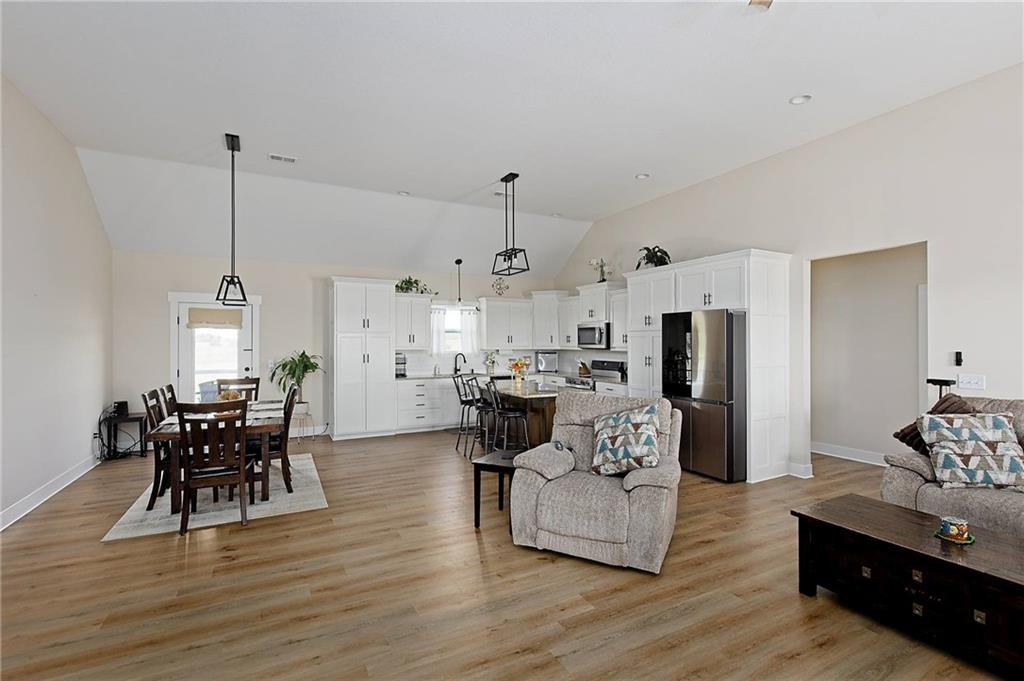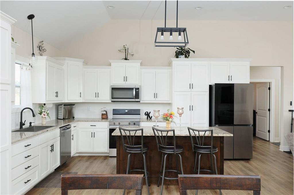 Like new inside and out! Enter this nearly new home and step into an expansive open living area with soaring 12' ceilings. The kitchen features stainless steel appliances, granite countertops, two pantry spaces and a large island. 9' ceilings are throughout the rest of the home. The spacious primary suite includes a long double vanity area, large shower and generous walk-in closet. Two more substantial-sized bedrooms share a hall bath. An oversized two-car garage provides additional storage for vehicles and more. This great ranch home is situated on 4 acres on the outskirts of Kingsville--just minutes away from Holden and only 15 minutes to Pleasant Hill. Enjoy modern living with views of fields from your front porch and back patio. This is a great opportunity to live in a new, contemporary home while enjoying the peacefulness of country living. This is a "must see" property!