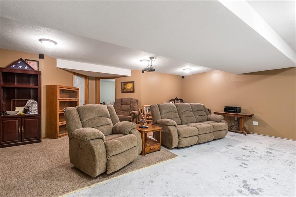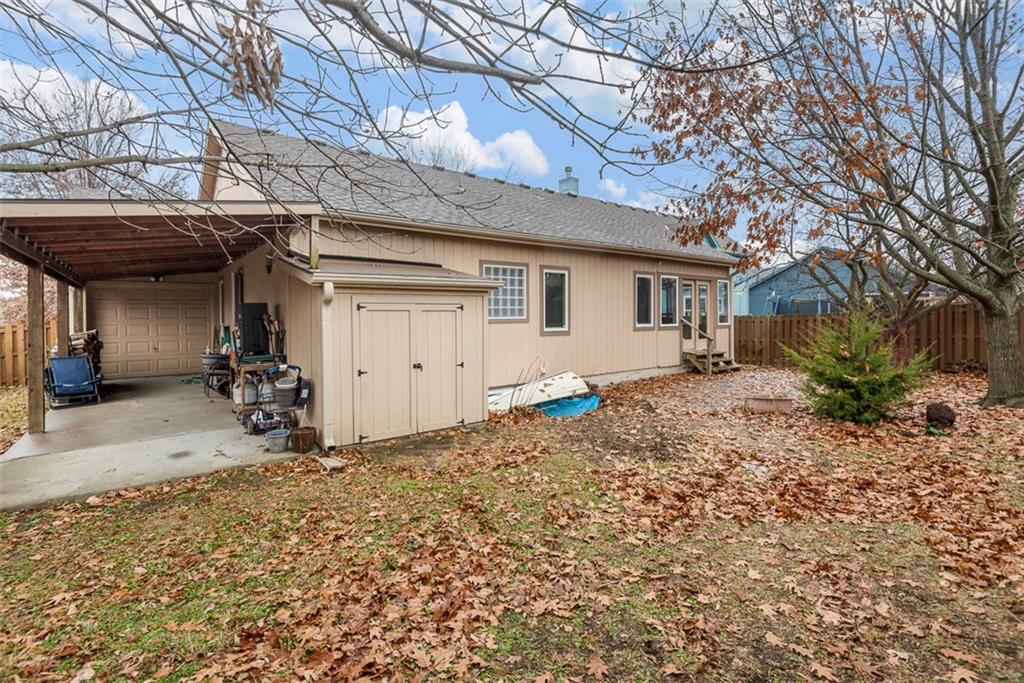 NEW PRICE! Custom built spacious 3,000' Ranch; 4 Car Garage & a Car or Boatport; 5 Bedrooms with Primary and 2 other bedrooms on the main level near laundry; w/ an open feel as you walk in with the a vaulted living room ceiling and stacked stone fireplace. Gorgeous kitchen with oak cabinets and granite countertops. Hearth breakfast area that flows into the dining/sunroom. The primary bedroom has a beautiful stone ensuite, w/walk-in shower & tub. The finished basement includes 2 additional bedrooms, a 3rd full bathroom, recreation room, and office / media room. The 4th car garage opens in the back to a concrete slab for additional parking. A Fence, sprinkler system, and shed are just those perfect added extras w/ A New roof in 2021 & a French Drain (80') added in backyard Summer 2024. House needs carpet and a retaining wall repair, which seller has a bid for in supplements.