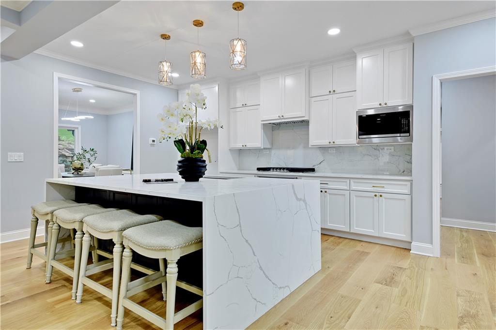 Now Offered at $1.299M — Just in Time for the Holidays! Luxury is redefined in this beautifully reimagined 5-bedroom, 4.5-bath home in one of Leawood’s premier gated communities. Thoughtfully redesigned with a modern open layout and timeless finishes, this home is perfect for cozy holiday gatherings or effortless upscale entertaining. Backed by peaceful wooded views, it offers a rare blend of privacy and convenience. Inside, soaring ceilings and an open-concept flow create a bright, welcoming atmosphere. The chef-inspired kitchen features waterfall-edge counters, custom cabinetry, stainless steel appliances with a gas stove, a hidden prep kitchen, and a striking wine bar—ideal for hosting holiday celebrations. The living and dining areas are accented with stylish lighting and custom details, opening to over 800 sq ft of dual decks overlooking the trees, offering a serene backdrop for morning coffee or festive winter nights. Upstairs, spacious bedrooms with Jack-and-Jill baths and generous walk-in closets ensure comfort for family and guests. The spa-like primary suite includes a massive shower, freestanding soaking tub, and an unbelievable walk-in closet with direct access to the laundry room—luxury meets convenience at every turn. The walk-out lower level adds even more livable space with a fifth bedroom perfect for guests or multigenerational needs, a fitness room, and a sleek entertaining bar. Additional upgrades include a brand-new HVAC, concrete tile roof, dual staircases, refreshed landscaping, and updated exterior paint. Every detail reflects a meticulous, no-expense-spared renovation focused on beauty, function, and modern luxury. Perfectly located near top-rated schools, premier shopping, dining, and easy highway access—this home offers an elevated lifestyle in one of Leawood’s most sought-after gated communities