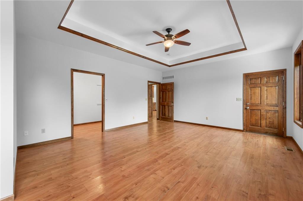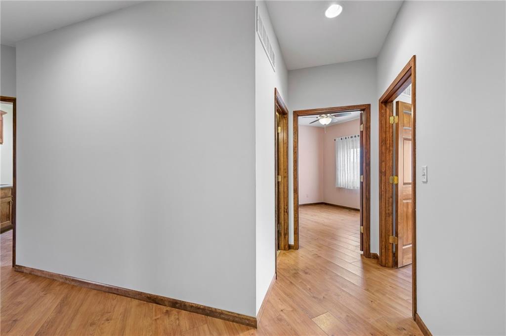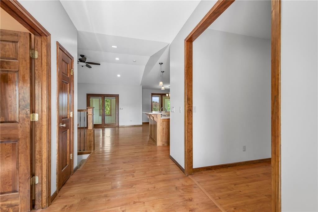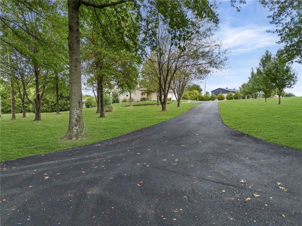 Beauty in Basehor! Welcome home to this once in a lifetime opportunity to plant roots where space, peace, and potential come together. This custom built ranch on 8.17 acres (m/l) is your own vacation spot! Enjoy the 4 bedroom, 3 full bathrooms with an extra 5th non-conforming bedroom on the main level used as an office. The main floor primary bedroom is 12' x 15' (living room size!) with a private full bathroom suite. You'll love laundry days as this laundry room gives you so much space! Prepare to be the holiday hostess with 2 full kitchens there is plenty of space for everyone. The walkout basement includes a full eat-in kitchen, bedroom and full bath, PLUS living room space to watch your favorite sports team! BONUS the unfinished space serves so much storage! Upgrades include:2x6 stud walls, 36" wide doors, matted insulation, rafted 16" on center, zero entry garage doors, and WOW! check out the Pella windows top grade with built in blinds and a lifetime warranty. Beautiful oak trees, 2 acre stocked pond (check out the fish photos), 30 x 50 heated outbuilding with full bathroom, garden shed, and the prettiest sunsets you've ever seen. Start a hobby farm, tinker on your cars in the outbuilding, or build another house on the property. Vacation at home while you enjoy the sounds of nature on your enclosed porch. This is retreat living!