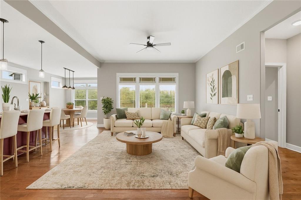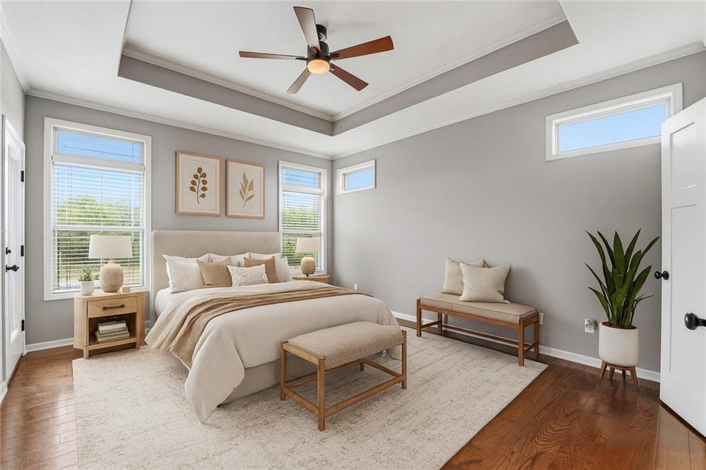BACK ON THE MARKET THRU NO FAULT OF THE HOME/SELLER SIDE. OPPTY. IS OPEN! Exec.-style 4 bdrm./1 ofc., 3 bath, 3 car gar. home w/a handsome shop, w/heavily timbered acreage backyard, paved road, easy access to everywhere, a rare find. An inviting open layout, gorgeous hardwoods, revealing the hub of the home-the liv. rm., kit. & din. area. The beautiful kitchen features recessed lighting, granite countertops, a center island, walk-in pantry, built-in hutch, dbl. sinks, ss appl., task lighting. Lg. windows fill the space w/natural light & frame your rural scenery. The lg. primary suite is a true retreat, featuring coffered ceilings, abundant windows & tiled bathroom with a private water closet, double granite vanity, and a “wow” walk-in shower/seat. The large walk-in closet includes custom built-ins. Bdrm. & closet connect conveniently to the laundry room. A 2nd bedroom and full bath are also located on the main level, both finished in soft, neutral tones. The wide staircase is a pretty focal point in the home, leading to the lower level-home to a spacious family room with a gas-starter fireplace, wet bar, game closet and custom shelving. You’ll also find two more generous bedrooms, another full tiled bath, and a spacious home office. Other pluses-a dedicated storm shelter & storage area in the unf. part of bsmt./utilities. This home truly has it all-the perfect blend of comfort, luxury, privacy, and nature. It feels nearly new and showcases quality craftsmanship in every detail. Addl. ext. features include a 3-car attached garage, a lg. backyard deck, covered patio, recessed soffit lighting for your landscaping, covered entry way, garden beds, 4 wheeler trails & your own private hunting spot/nature exploration. An amazing 40x30 shop equipped with a 200-amp electrical panel, an 8-ft. covered overhang, an RV door, standard door & man door. Located on a paved road just off Hwy 59, this exceptional rural property offers easy access to major hwys. Click on the video!