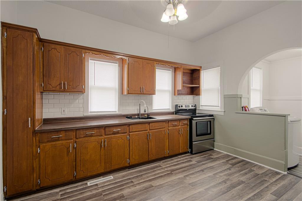 Step into charm and comfort with this beautifully updated 2-bedroom, 1-bath ranch in the heart of Butler! Featuring approximately 1,000 sq. ft. of move-in-ready living space, this home blends modern updates with classic character. You’ll love the hardwood floors that flow throughout, creating a warm and inviting feel from the moment you walk in. The kitchen has been tastefully refreshed with new cabinets, a modern sink, and an electric range, offering plenty of storage and functionality. The bathroom shines with new flooring and updated fixtures, giving the home a clean, contemporary look. Fresh paint throughout ties everything together with a bright, neutral palette that suits any décor style. Additional highlights include central heating and air for year-round comfort, and a cellar-style basement that’s perfect for storage or a small workshop. The property sits in a convenient location just minutes from downtown Butler, close to shops, restaurants, and local amenities — ideal for anyone seeking both value and convenience. This home checks all the boxes. Vacant and ready for immediate move-in, it’s an excellent chance to own a well-maintained home at an affordable price in a great community. Don’t miss out — schedule your showing today and make this Butler gem your new home!