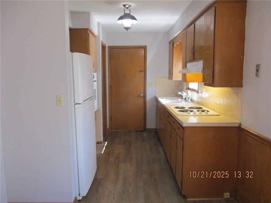 WON'T LAST LONG AT THIS PRICE!! This home is located in a laid-back neighborhood and is not far from downtown. This home has all brand-new flooring throughout the home, freshly painted walls. This home features a living room, a country kitchen, 3 bedrooms, and 1 full bath and 1 half bath, a fenced yard, a cook-top and a built-in oven, refrigerator, and a full basement which is half finished into a family room.