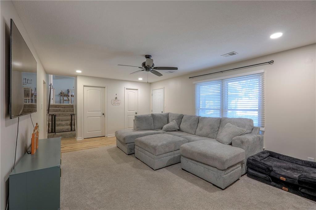Beautiful recently renovated house in an established sought after neighborhood of Raymore. New knockdown ceilings, all new interior paint, all new interior doors, all new flooring including new carpet, new light fixtures, and updated kitchen, with beautiful butcher block countertops. 4th bedroom is a converted attic to loft and could be multi use room which is currently being used as an office/play room space. Updated fireplace with gas logs in the family room. Roof, HVAC and hot water heater have all been replaced within the past 5 years. House also has maintenance free vinyl siding and newer windows to give peace of mind for all the big ticket items. Come take a look at this beautiful home!