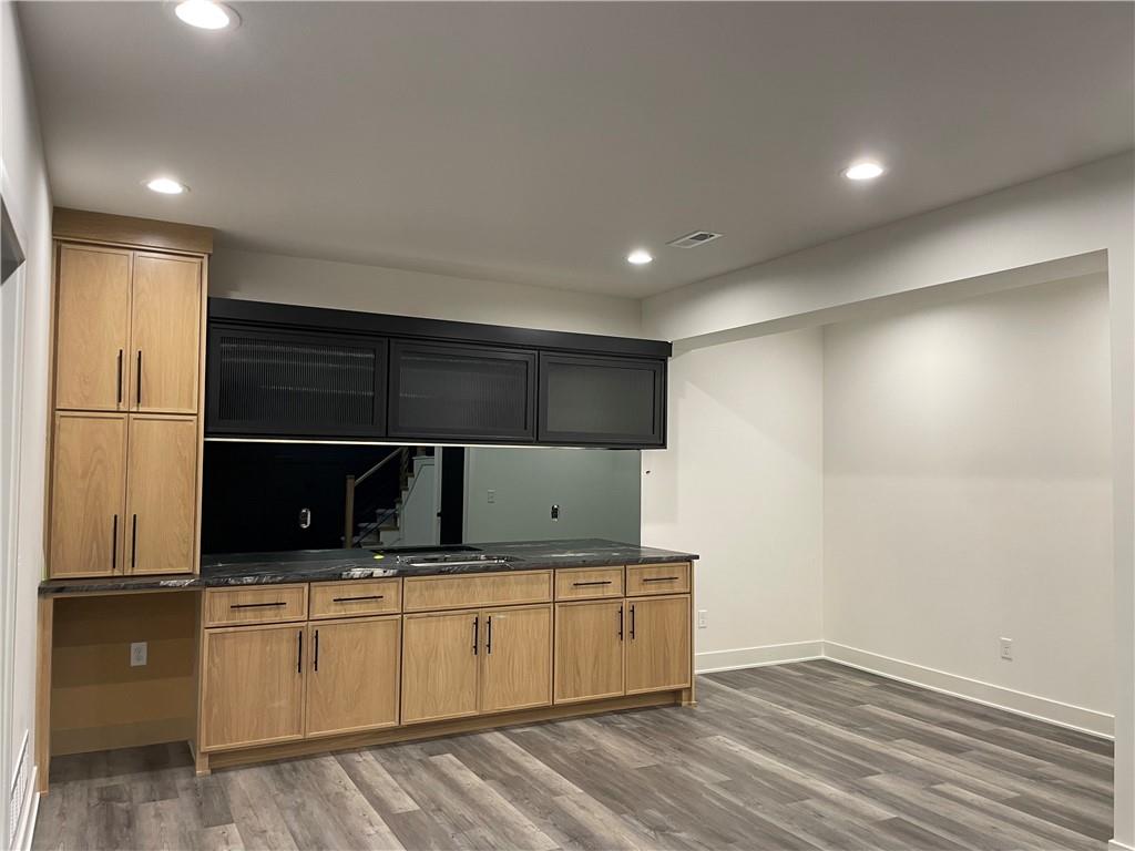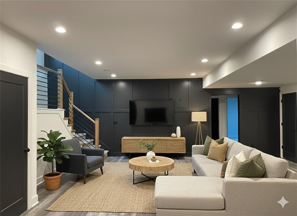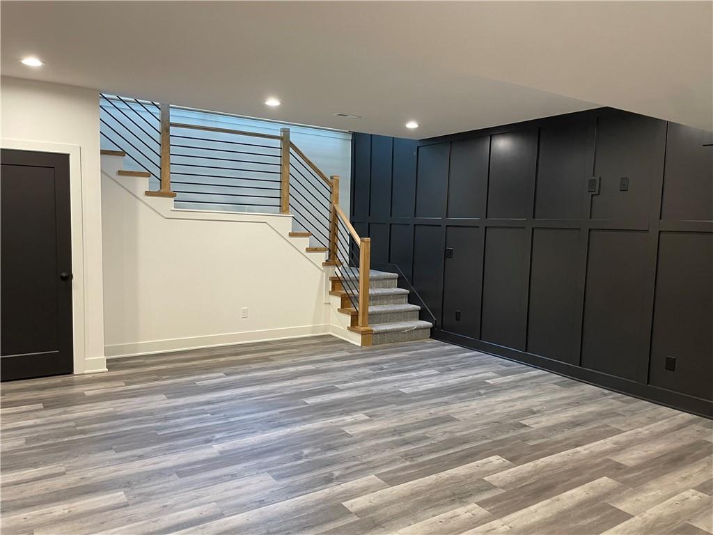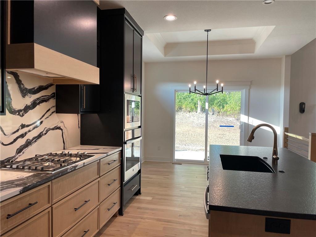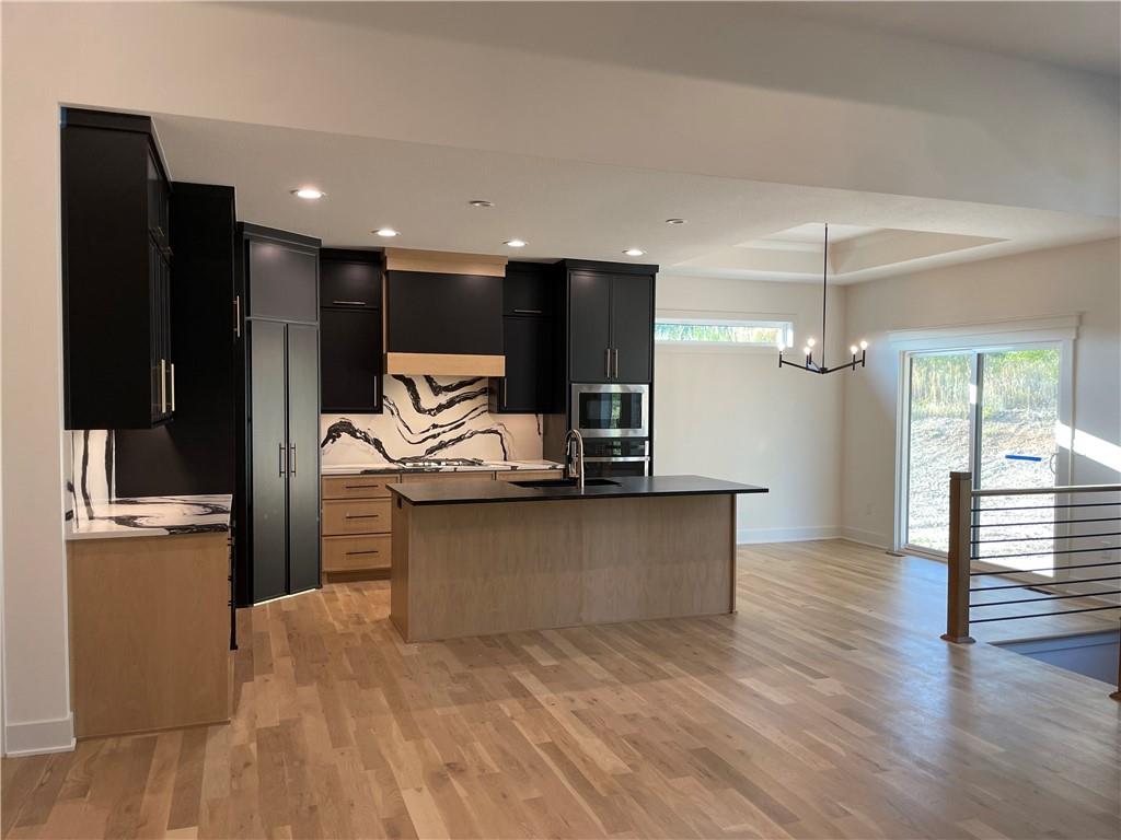 WaterCrest Landing | Sunset Views. Elevated Living. Discover the popular Brookside floor plan in WaterCrest Landing—this time with a sleek, modern twist. Built by Spiess Custom Homes, this brand-new Rev 1.5 Story offers the beloved, seamless flow of expert craftsmanship, now elevated with bold black accents throughout, delivering a sophisticated, magazine-worthy finish. Spanning over 2700 finished square feet, the interiors are defined by impeccable details and superior, high-contrast finishes. The gourmet kitchen is a chef's delight, showcasing custom cabinetry, a generous island, and rich wood flooring that flows throughout the main level, perfectly punctuated by modern matte black accents and lighting. The great room features a vaulted ceiling, creating an airy, light-filled space for gathering. The design effortlessly extends to the outdoors with a spacious covered patio, an ideal extension of the living area for relaxation or hosting, set against a tranquil, private backdrop. The lower level is built for entertainment, featuring a full wet bar anchoring the expansive recreation room—a perfect space to showcase a pool table or media center. Enjoy the carefree lifestyle of WaterCrest Landing, complete with a community pool and included maintenance services. This is a distinctive property, offering a refined, comfortable life with a contemporary edge.