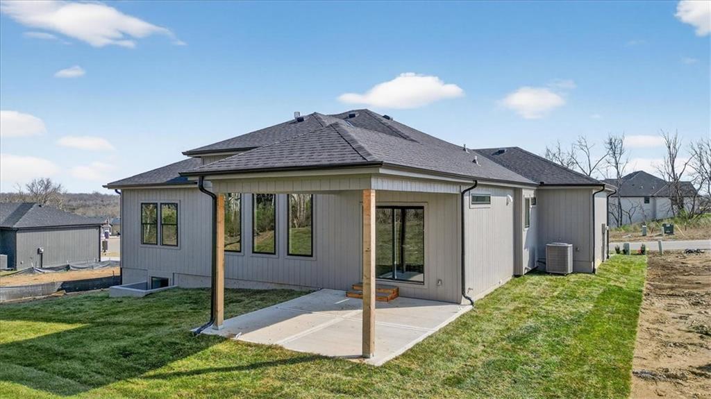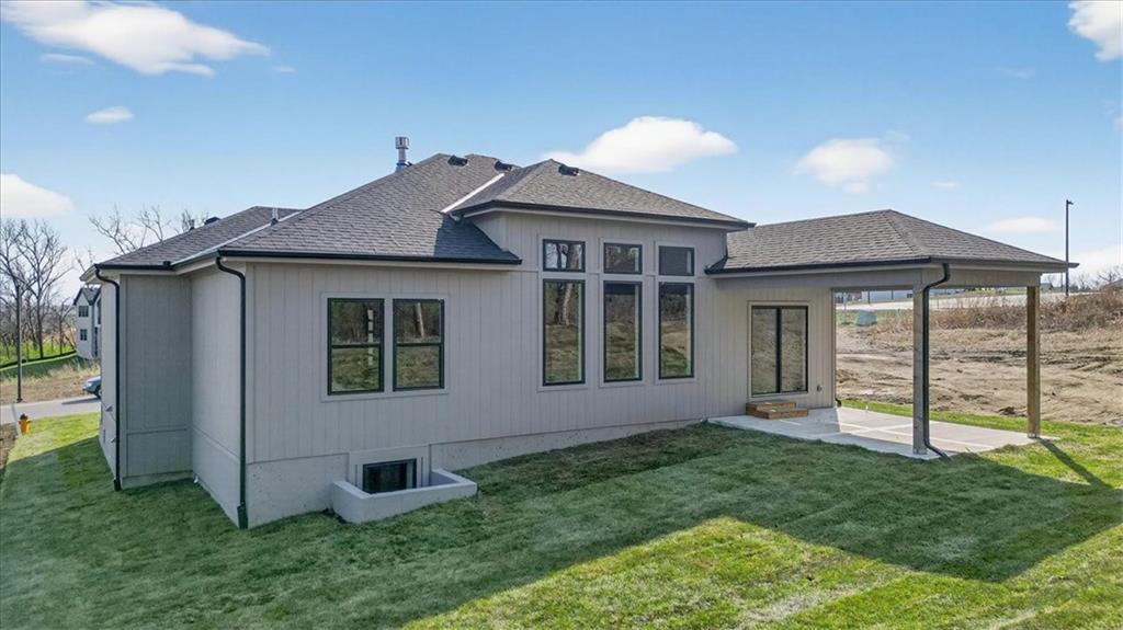 BUILDER INCENTIVE OFFERED 4/1 - 4/9 (PRE-PARADE) | Brookside Rev 1.5 Story by Spiess Custom Homes offering 2,700 finished square feet of superior design. Situated on a serene, tree-lined lot directly across from Lake Lenexa and Black Hoof Park (trails & water access). Main level features a spacious great room with soaring ceilings, beautiful fireplace with illuminated accent seating, wall of windows offering natural light and open concept floorplan. The gourmet kitchen offers granite, oversized island, gas cook-top, walk-in pantry and stainless steel appliances. The main floor also offers a 4th bedroom/office and full bath, plus the laundry room that walks through to the master closet. The master suite is situated just off the great room and is a retreat to unwind and relax in your private spa like bathroom with oversized shower, floating double vanity, and large walk-in closet. The finished lower level includes a bar with lounge area and spacious family room, secondary bedrooms and full bath, in addition to plenty of unfinished storage space. Live the carefree WaterCrest lifestyle: Community pool, pickle ball courts, mini golf, playground area and maintenance provided optional. A rare combination of custom quality and unmatched natural setting.