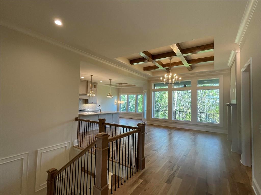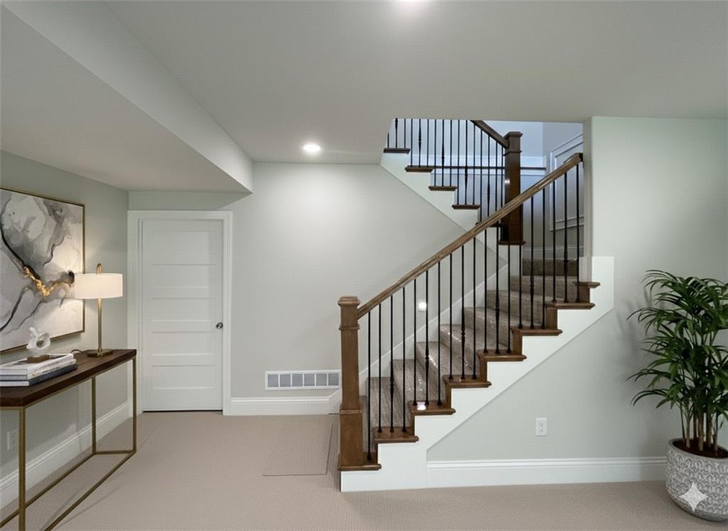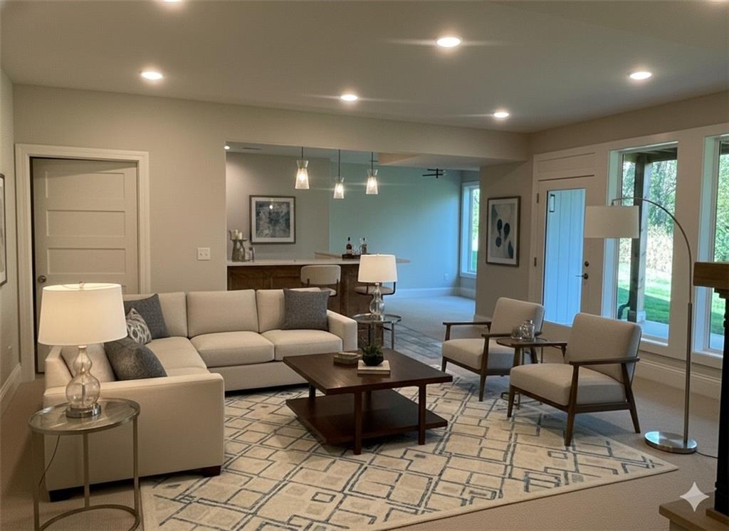 WaterCrest Landing | Sunset Views. Elevated Living. TIMELESS ELEGANCE MEETS MODERN FUNCTIONALITY. Introducing a stunning new home by Mears Quality Homes that perfectly balances timeless interior design with modern elegance. This luxurious home offers functional living space and is set on a premium lot backing to a private treeline in WaterCrest Landing. Step inside and experience a sophisticated aesthetic, where custom finishes like detailed wainscoting and warm wood floors provide a sense of enduring quality, while the open-concept design and clean lines ensure modern functionality. The thoughtful layout features a lavish main-level primary suite with a spa-like European shower, providing the ultimate daily retreat. An additional flex room/office on the main floor offers exceptional versatility. Designed for the host, the home features an incredible walk-out lower level complete with a dedicated wet bar, spacious rec room, and full bath—the ideal space for grand entertaining. The living extends outdoors onto a covered patio, where the peaceful, wooded backdrop ensures your privacy. This Mears Quality home delivers refined living, exceptional privacy, and is a must-see for those seeking enduring style in an amenity-rich community.
