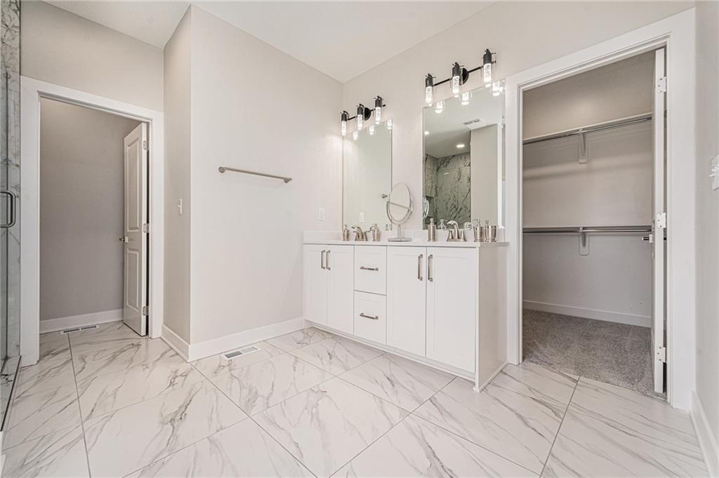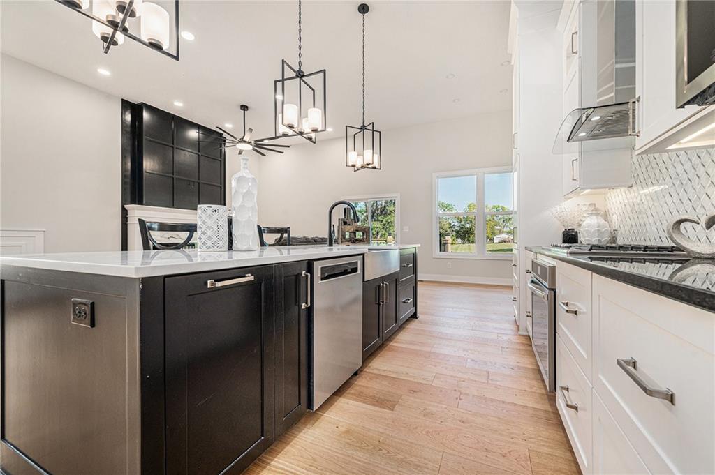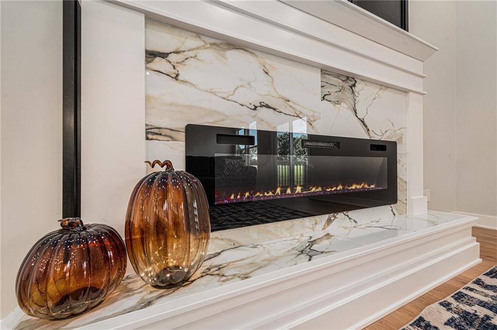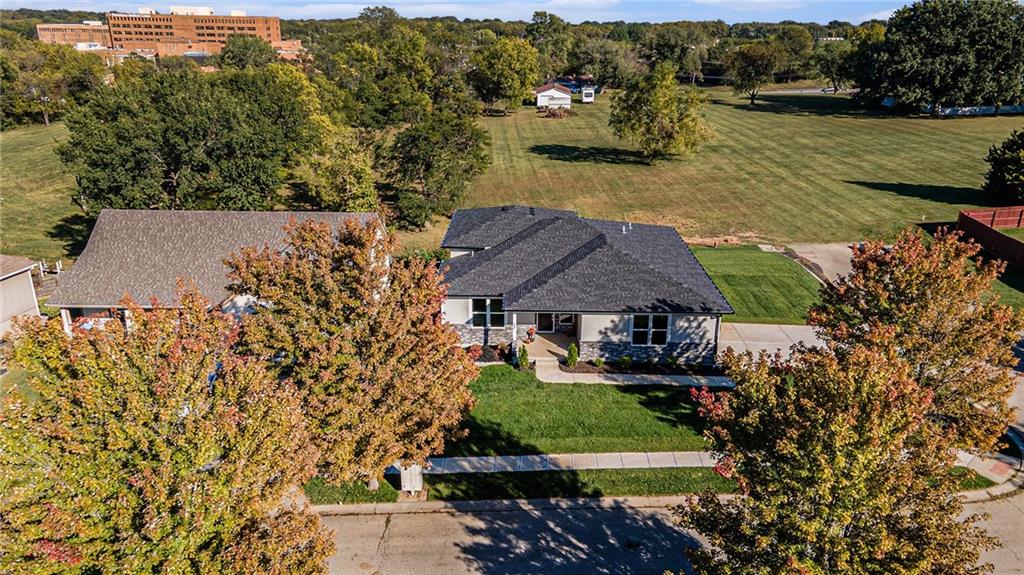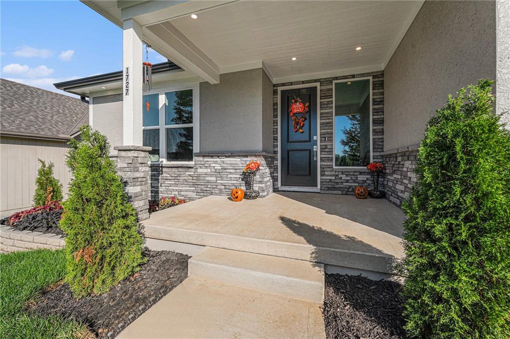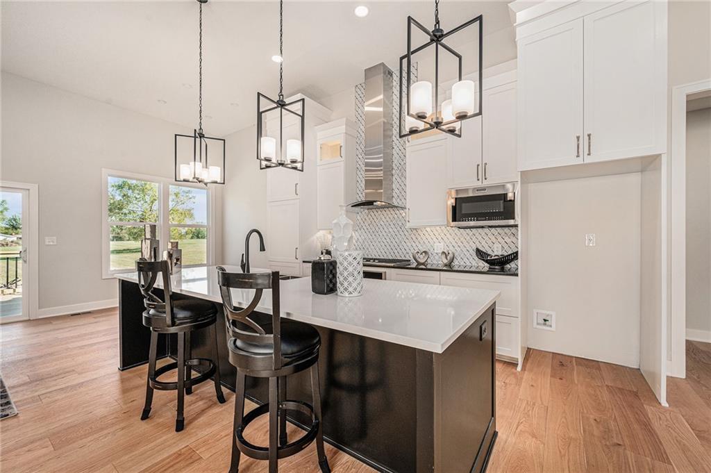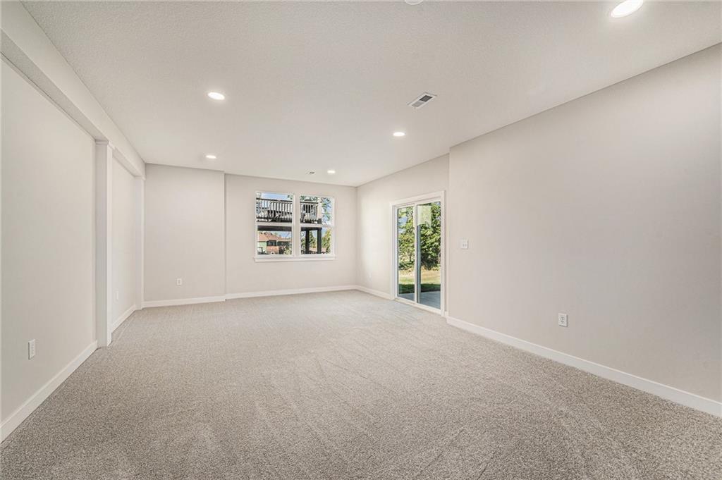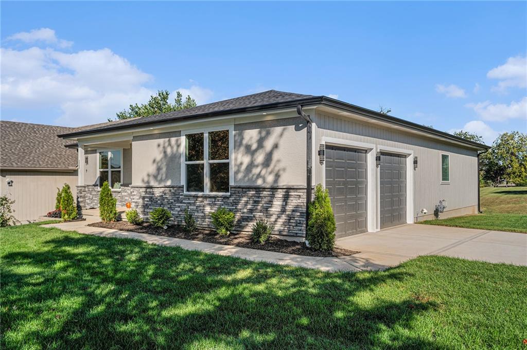 Built by two trusted Kansas City builders with 50 + years of combined experience, this handcrafted Reverse 1.5-story home showcases quality you can see and feel. Step through the 8-foot front door into a soaring great room with floor-to-ceiling windows, modern electric fireplace, and open flow to a chef’s kitchen featuring custom wood cabinetry, quartz counter tops, tile backslash, and premium KitchenAid + Frigidaire appliances. The main level offers two spacious bedrooms, each with its own full ensuite bath — perfect for guests or a home office. The spa-inspired primary suite includes a double-vanity bath, standalone soaking tub, and dual walk-in closets. Downstairs, a finished walk-out basement expands your living space with two additional bedrooms joined by a stylish Jack-and-Jill bath, a generous recreation area, and a convenient half bath for entertaining. Total of 4 beds | 4.5 baths | ~2,927 sq ft of finished comfort. Built for efficiency and durability with a Hi-Efficiency furnace, tankless water heater, and energy-smart windows. Outdoor living shines with a deck overlooking the private backyard that backs to green-space. Located just minutes from I-435, The Legends, parks, and schools — enjoy quiet suburban living with easy city access.