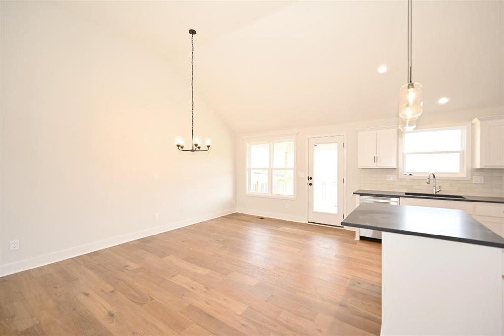 Stunning Custom Home with Modern Features and Inviting Spaces Welcome to your dream home! This exquisite property showcases an open floor plan, ideal for both entertaining and everyday living. The elegant kitchen boasts pristine white granite countertops, custom cabinets, and stainless steel appliances, all seamlessly flowing into the spacious living area centered around a beautiful fireplace. Step outside to discover a covered deck complete with a fan and light, perfect for enjoying serene views of the adjacent pasture. The rich feel of this home is accentuated by LVP throughout and vaulted ceilings enhancing the sense of space and light. The laundry room features stylish tile, while two generously-sized guest bedrooms offer plush carpeting, ceiling fans, and trey ceilings, creating a comfortable retreat for family and friends. The guest bath is tastefully designed, highlighting a tiled tub and a marble vanity that exudes luxury. Retreat to the master bedroom, a good-sized haven with carpet, a ceiling fan, and sophisticated trey ceilings. The walk-in master closet provides ample storage, while the en-suite master bath features elegant tile flooring, a double vanity with sleek black faucets, and a spacious tiled shower. The lower level invites you to enjoy a large fourth bedroom, complete with carpeting and a ceiling fan, alongside a substantial family room perfect for movie nights. The additional full bath boasts a tiled floor and a shower for convenience. Completing this remarkable home is an oversized three-car garage, providing plenty of space for vehicles and storage. The front of the house is adorned with beautiful stone, adding to the curb appeal with shutters to boost the look. Don’t miss the opportunity to make this luxurious yet inviting home your own!