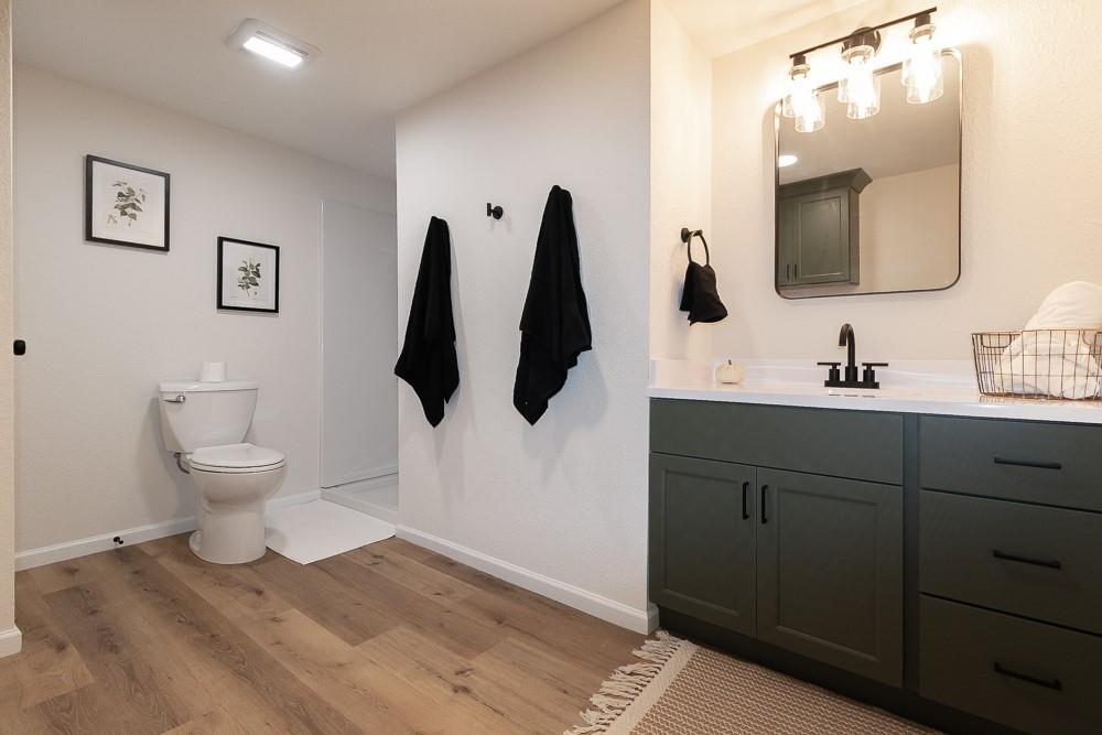 Gorgeously remodeled and spacious home. The newly designed kitchen offers new custom cabinets, new tile backsplash, and all-new appliances. Bathrooms carry the same high-end cabinetry for each vanity. Dual living room space, one on the main floor and a second in the basement; with the basement offering good space for hosting, storing, or hobbies. Additionally, the home offers all new flooring throughout, all new paint for the interior and exterior, as well as all new doors, hardware and fixtures. The bedrooms include a primary bedroom and a second bedroom on the main floor with a larger bedroom in the basement. The exterior offers new windows, new roof, new front deck, and new boards and reinforcements on the backyard deck. The spacious front and backyard areas allow multiple options for hosting and activities.