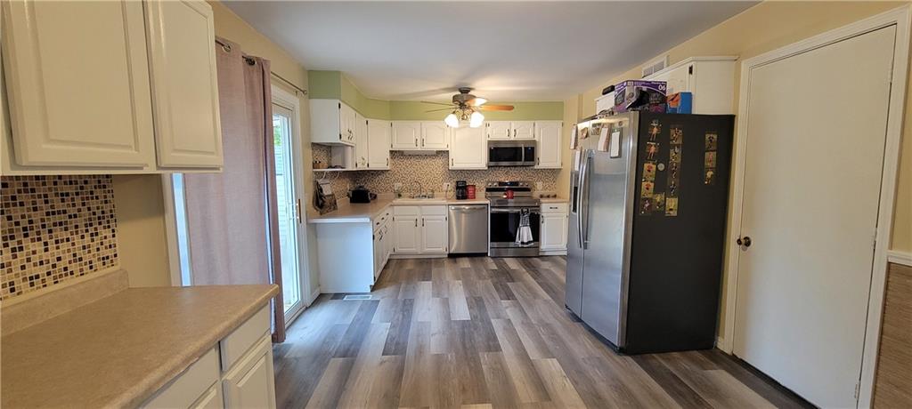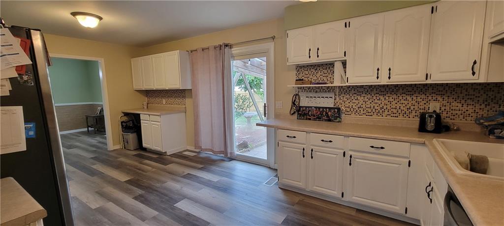 Welcome home to this charming 1.5 story property offering 4 bedrooms and 2 full baths! The main floor features a spacious layout with new flooring throughout, including fresh carpet in the master bedroom. Enjoy meals in the formal dining room conveniently located just off the kitchen. The private backyard is perfect for relaxing or entertaining with a newly installed wood privacy fence and a pergola-covered patio. The walkout basement provides additional parking on the side of the home and includes a non-conforming bedroom, laundry area, and plenty of room for storage, a workshop, or future finished living space. Upstairs, you’ll find a large loft area, two bedrooms, and a full bath—ideal for kids, guests, or a home office. This home has so much to offer with flexible spaces inside and out—schedule your showing today!
