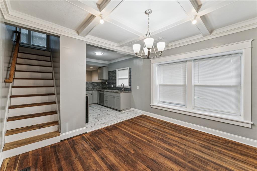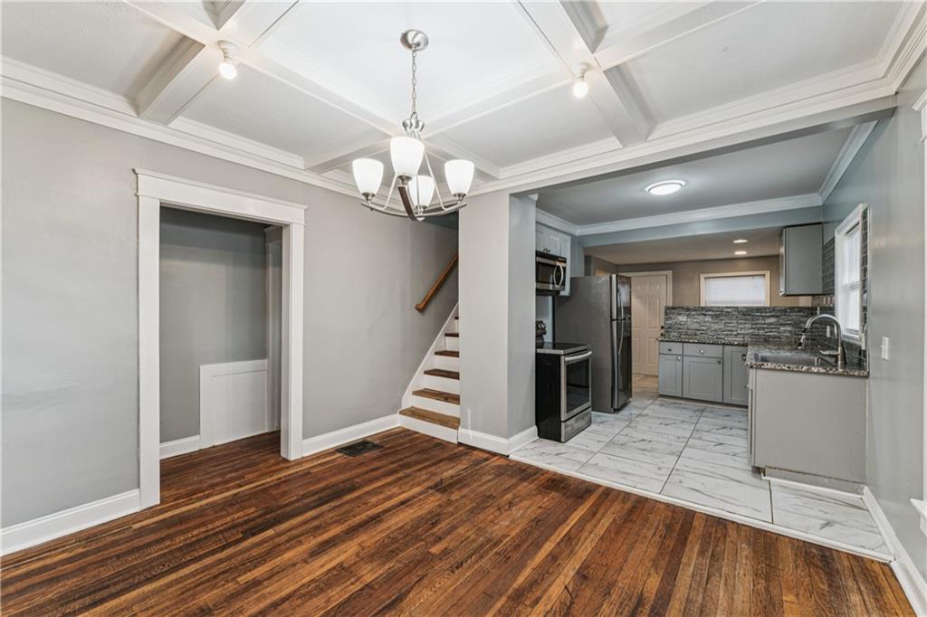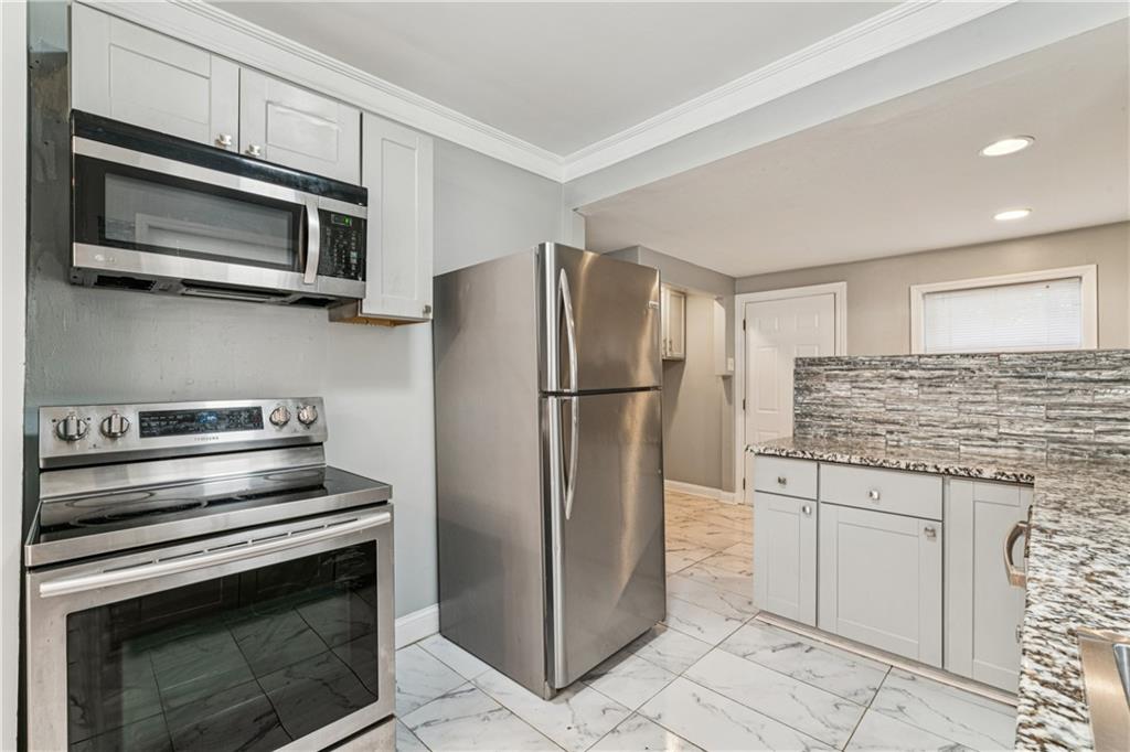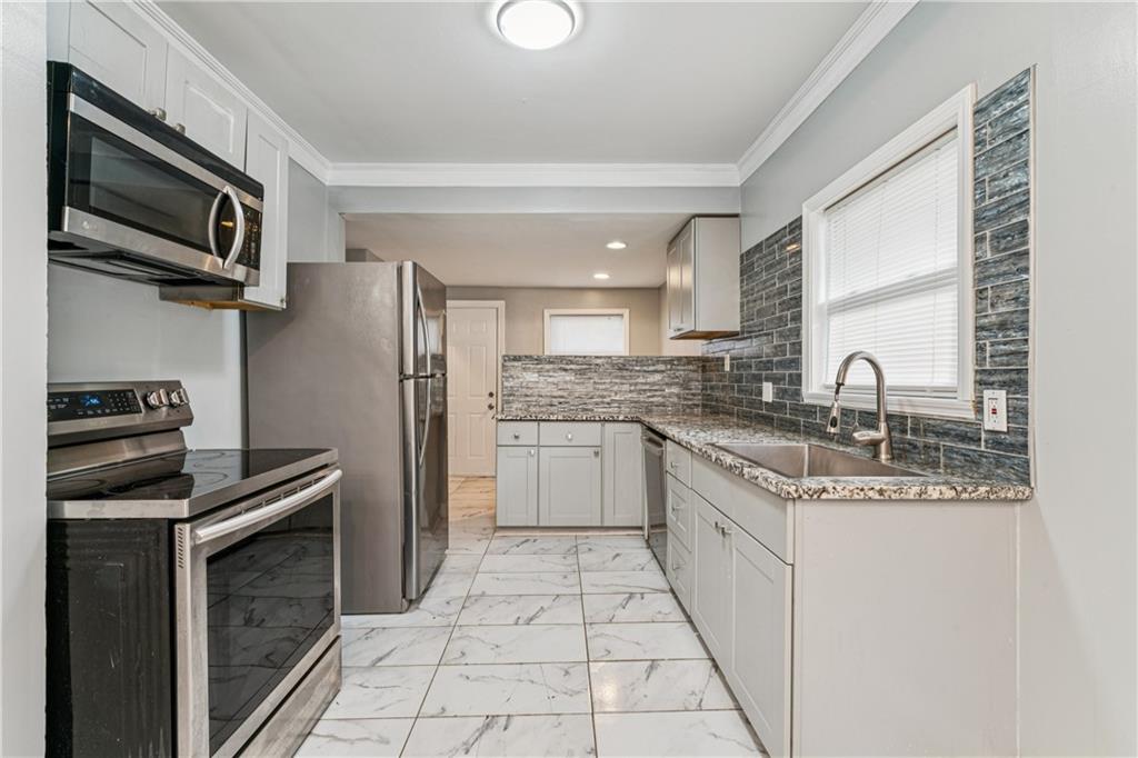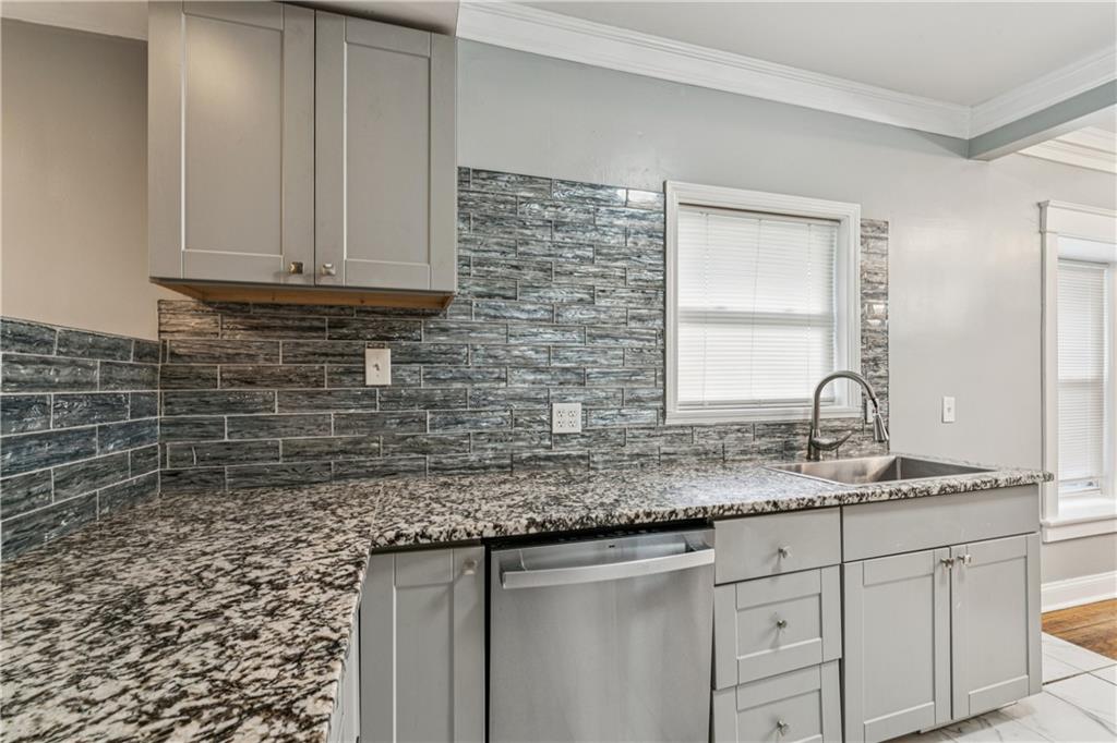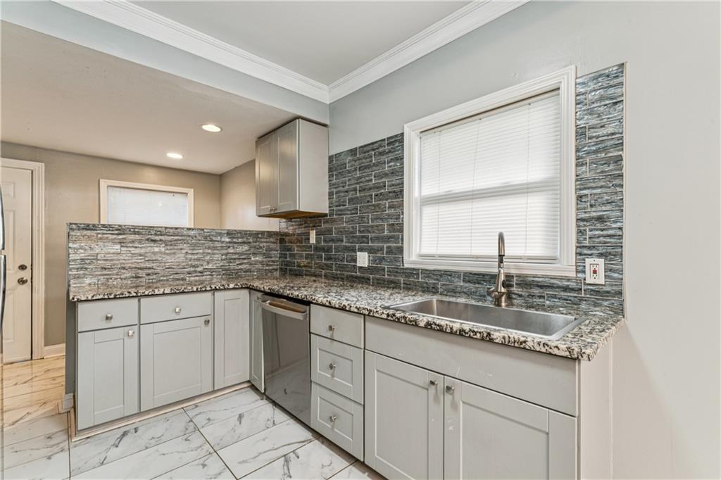 WELCOME HOME!! Just in time to bring in the New Year in your new home! Move-In Ready! NO MORE RENT! Fully Remodeled 3-Bedroom Charmer This beautifully updated 3-bedroom, 1-bath home offers the perfect blend of modern finishes and cozy charm. From the moment you arrive, the welcoming front porch sets the tone with its inviting character and curb appeal. Step inside to discover a completely remodeled kitchen featuring granite countertops, newer cabinets, gorgeous backsplash, and a convenient breakfast bar—ideal for casual meals or entertaining. The open-concept layout flows into a warm and inviting living area, complete with a modern electric-start fireplace that adds style and comfort. Upstairs, you'll find a private retreat-style bedroom, perfect as a primary bedroom, guest room, or dedicated home office. Just off the kitchen are washer/dryer hookups for added convenience, and the unfinished full basement provides plenty of storage space. Enjoy your evenings on the spacious back deck, perfect for outdoor dining and gatherings with friends and family. Additional highlights include: Fresh flooring, Updated lighting and fixtures. Whether you're a first-time homebuyer, downsizing, or looking for a smart investment property, this move-in ready gem checks all the boxes. Don’t miss your chance—schedule a showing today!