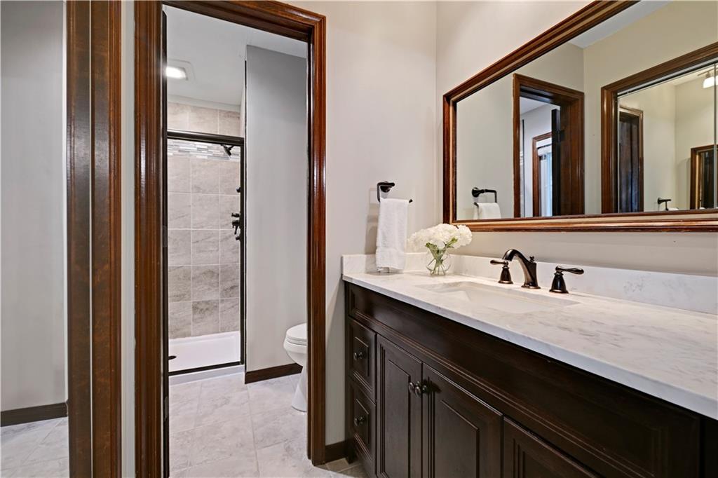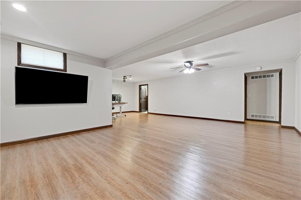 Rare opportunity to live in the highly sought-after Blue Valley School District on acreage in Overland Park without an HOA! This beautifully updated and well maintained 4 bedroom, 2.5 bath home sits on an estate size 1.28 acre lot surrounded by mature trees in a stunning estate lot neighborhood. The home features the convenience of main floor bedrooms, a large vaulted ceiling great room, an oversized 3 car garage, and a fully finished walkout lower level offering endless possibilities for future recreation (including an additional non-conforming bedroom/home office). Enjoy the perfect balance of privacy and convenience with easy access to Highway 69, top-rated schools (home is within boundaries of Blue Valley's newest Elementary, Middle, and High School), restaurants, shopping, and entertainment. The yard is fully fenced with a large recently updated shed and is a gardener's dream featuring a large garden bed area, apple, cherry, peach, and pear trees! The large backyard is also perfect for entertainment, featuring a large deck with new Trex decking/railings, and a walkout basement patio area. Sit on the deck and enjoy amazing sunset views and enjoy the peace and quiet in this wonderful neighborhood! Originally built as a custom home, upgrades include fully remodeled Master bathroom, Trex decking, solid wood interior doors, carpet, tile, and durable hardwood laminate flooring throughout, as well as new exterior/interior paint. Just some of the upgrades completed during ownership include new roof, high efficiency HVAC, driveway, patio, sprinkler system, french drain/sump pump, and multiple windows. Pride of ownership shows throughout. A truly exceptional property in an unbeatable location.