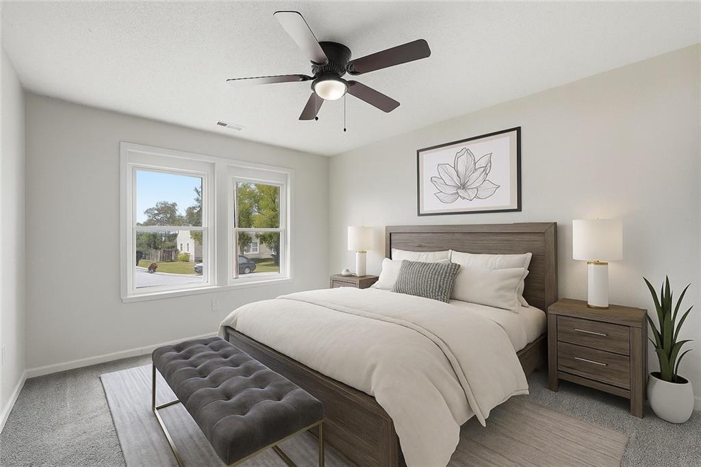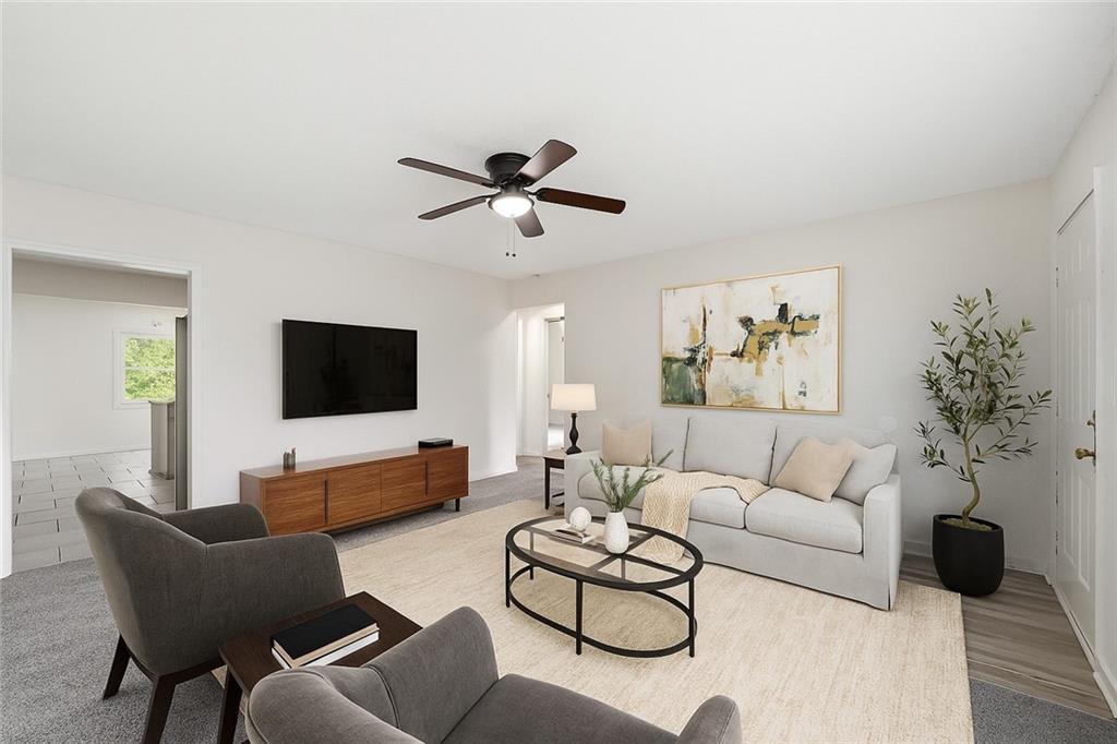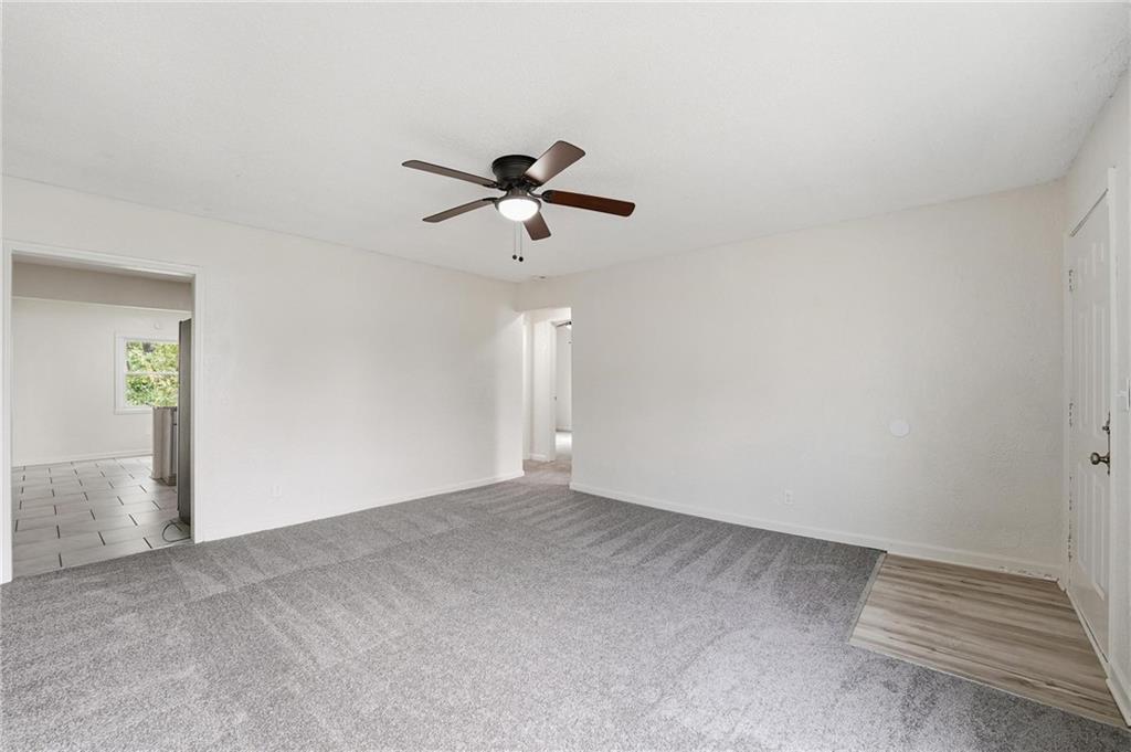 Welcome home to this cheerful ranch that blends fresh style with everyday practicality. Inside, you’ll find brand-new carpet and fresh interior paint throughout, including doors, giving every space a crisp, clean feel. The bright living room opens easily into the kitchen, where granite countertops, a stainless steel refrigerator, and tile flooring make cooking and gathering a breeze. A convenient peninsula bar provides extra counter space and a great spot for casual dining. The primary bedroom offers privacy with its own ensuite bath and walk-in closet, while the additional bedrooms are spacious and comfortable. Both bathrooms feature classic white subway tile for a timeless look. Outside, the home’s freshly painted front door adds a pop of color and charm. Enjoy the large lot with mature trees—plenty of room to relax or play. With a newer roof, easy highway access, and a street with no through traffic, this home combines convenience with peace of mind. Schedule your showing today!