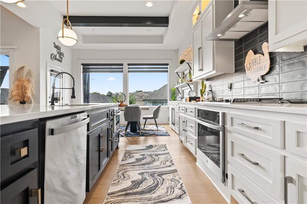 Better than a New Build! This Stunning, Smart & Stylish Home is located in the highly sought after Trails of Park Ridge! Completed in January 2022, this residence is truly better than new construction, offering premium upgrades, smart home features, and thoughtful design throughout. From the moment you step inside, you’ll notice the quality and care in every detail. The main level boasts soaring 14-foot ceilings and is filled with natural light from oversized picture windows and a large sliding glass door. The open-concept Great Room features modern floating shelves and flows seamlessly into the dining area and kitchen—perfect for entertaining or everyday living. The home has been extensively upgraded with voice-controlled “Alexa” smart lighting, automated lighting in the walk-in pantry, laundry room, and primary bathroom water closet. The heated garage includes adjustable temperature controls. In the kitchen and primary bedroom, smart remote-controlled blinds—part of a $9,000+ investment—add luxury and convenience, complemented by designer window treatments throughout the home. The lower-level patio was recently upgraded, providing expanded outdoor living space ideal for gatherings or quiet evenings. A new staircase connects the deck to the backyard, offering easy access to the newly landscaped yard. The exterior also features a new programmable holiday lighting system, perfect for year-round enjoyment. Additional highlights include 220-amp wiring on the lower patio (hot tub-ready) and a built-in camera security system. Whether you’re sipping coffee on the private deck or relaxing on the updated patio, this home blends comfort, style, and smart functionality. Don’t miss your chance to own this one-of-a-kind, move-in-ready home in one of the area’s most desirable neighborhoods. Schedule your private showing today!
