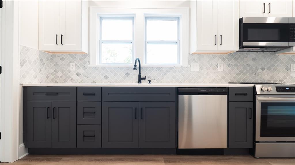 Beautifully remodeled home with plenty of space for hosting and living! The open-flow main level is perfect with bedrooms near by and the main Bedroom right upstairs. The beautiful countertops, brand-new appliances, updated lighting and fixtures, plumbing, electrical and so much more makes this home nothing short of just that! There's plenty of street parking but you also have a 2 car garage, perfect for those cold mornings. The basement is clean, clear and ready for your special touch!