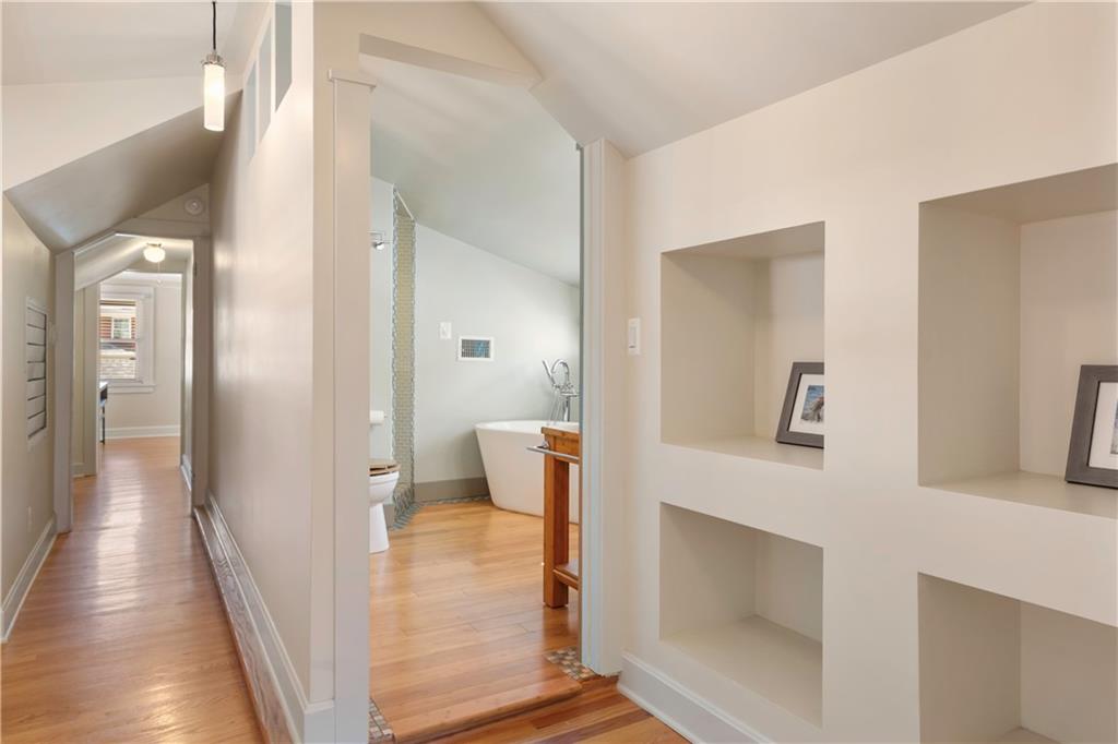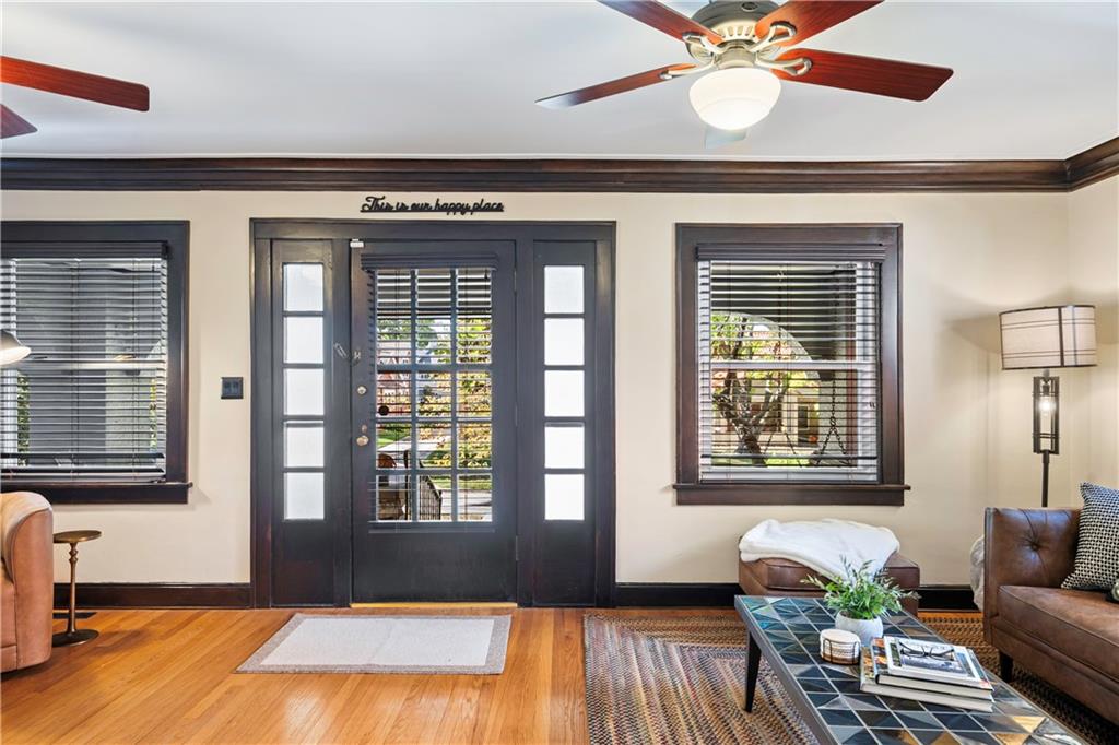 This house has just about everything you would want in a Brookside home...and MORE! A cozy front porch welcomes you inside to the bungalow floorplan: two bedrooms and full bath on the first floor; third bedroom, full bath and bonus space on second level. You will appreciate the original 1924 charm here: (gas) fireplace with bookshelves on either side; hardwood floors, crown molding, and stunning leaded glass doors in the spacious dining room lead you into the large, eat in kitchen. First floor bath recently completely remodeled! Upstairs, a sunny bonus room and updated bath connected to the third bedroom-check out the original Craftsman doors on the closets! Roof & HWH less than ten years old. Newer windows. Outside, the wide private driveway leads to a an oversized 22'x39' garage with it's own electrical box, water, gas furnace and a/c. Think of the possibilities here: man cave or she shed, kids' playroom, rec room, extra storage. This house sits in an ideal Brookside location--grocery store, bank, restaurants, cafes and shops just across the street!! The popular Trolley Track Trail is nearby as well. If you want to live in Brookside, this may be the ideal home for you!!