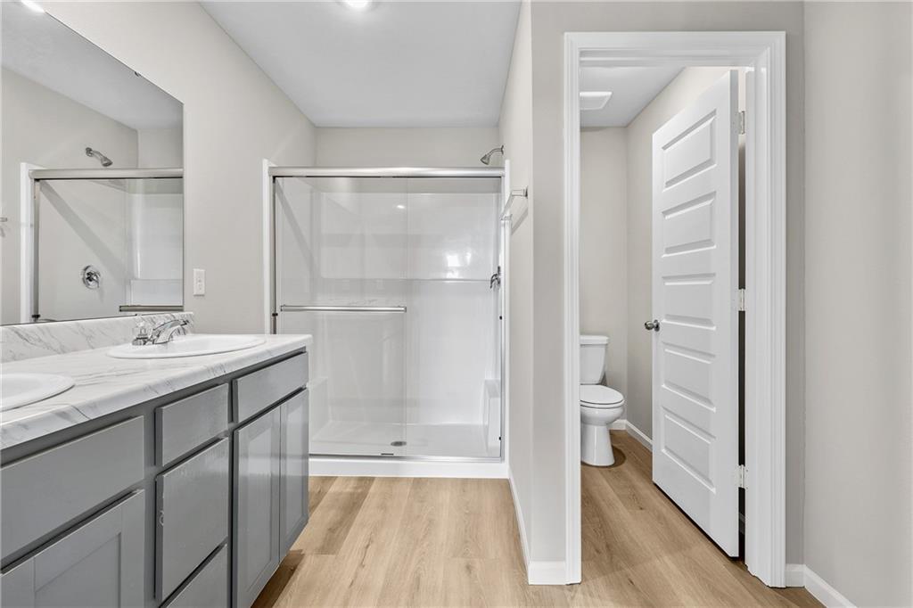 This home is under construction with an anticipated closing date in April. Photos are of a finished home in another community. Open floor plan, with LVP throughout, except bedrooms. Large primary bedroom has a HUGE walk-in closet and 60" walk in shower. 2nd and 3rd bedrooms are at the opposite end of the house. Free standing island with room for at least 3 bar stools and an adjoining dining area with room for a large table. Include the family room seating and you could potentially have up to 15 people seated. The 14x7 patio off the kitchen allows for even more room!