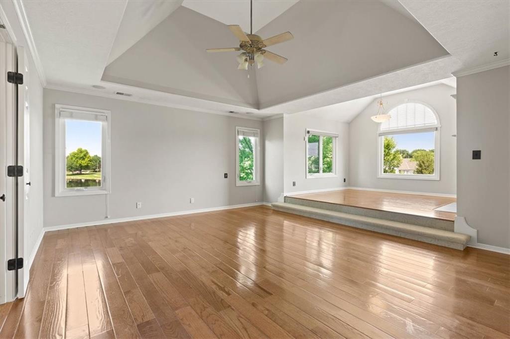 Location unlike any other in Lionsgate! This beautiful 2-story home backs to the neighborhood pool, tennis & basketball courts, playground, and overlooks the picturesque neighborhood lake—offering stunning views from the kitchen, breakfast nook, hearth room, and primary bedroom.Blue Valley's award-winning Lakewood Elementary and Middle Schools are just a safe, 10-minute walk away through quiet neighborhood streets.The kitchen is a chef’s dream with leathered granite and quartzite countertops, a custom-designed island, tile backsplash, slide-out shelving, and top-tier appliances—including a Wolf 4-burner gas cooktop with 24" griddle, Best downdraft hood, Café French-door refrigerator, and Monogram dishwasher.The cozy hearth room features a real stone fireplace with an Amish-made barn beam mantel from the 1880s. The spacious primary suite offers a gas fireplace, luxurious bath with jetted tub, double vanity, and an enormous double-sided walk-in closet.The finished basement is perfect for entertaining with a home theater featuring a drop-down screen, projection system, surround sound, and gaming hookups—ideal for family movie nights or watching big games. Plus, a hidden man-cave or she-shed with built-ins, drawers, and a workbench is tucked inside the oversized storage room.Most windows are energy-efficient, triple-pane premium Thermal King windows. An Andersen sliding glass door was recently added in the basement. The home is virtually soundproof and weatherproof. Step outside to your private backyard retreat featuring a full outdoor kitchen with natural gas grill and Brentwood countertops, a double-sided stone fireplace with water features, flagstone patio, Hot Springs Spa, and a stunning tankless waterfall for tranquil ambiance. Lush landscaping and mature trees surround the property. High-efficiency HVAC and water heaters, plus an extended home warranty through AB May, offer peace of mind. A true resort-style haven you’ll be proud to call home!