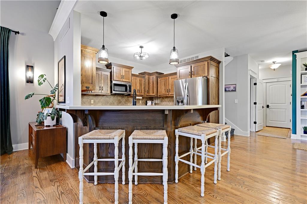 Charming Craftsman-style 2-story home featuring 4 spacious bedrooms, 3.5 baths, and a finished basement! Recent updates include a new roof plus HVAC & most kitchen appliances replaced in 2022! The inviting hearth room offers built-in shelving and a see-through fireplace shared with the great room, perfect for cozy evenings. Enjoy thoughtful touches throughout: window/storage seats in two bedrooms, a functional mudroom nook, vaulted ceilings, beautiful hardwood floors, and plush carpet. The private master suite boasts its own deck for relaxing mornings. The finished lower level includes a full bath and abundant storage space. The kitchen is equipped with stainless steel appliances and a walk-in pantry. Step outside to a fenced backyard with a sprinkler system, patio, and room to entertain. Don’t miss this move-in-ready gem!