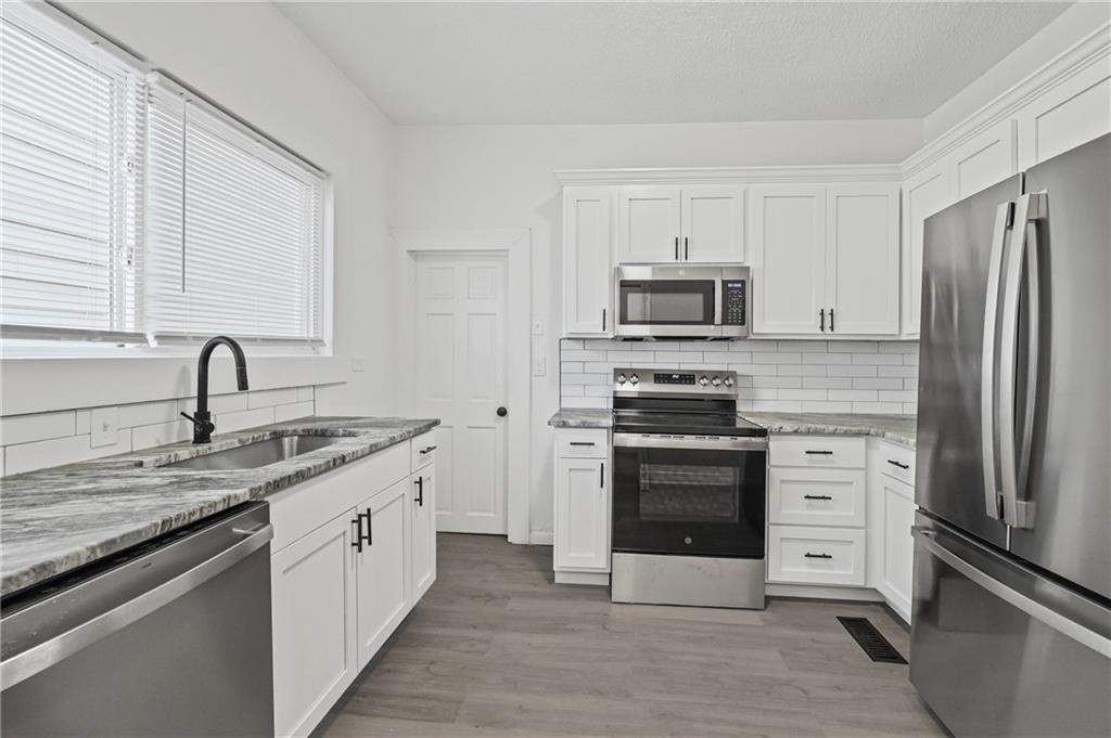 ***With an acceptable offer, Seller is willing to purchase the Buyer a shed or pay for Buyer's first year of lawn maintenance and purchase a home warranty.*** Classic Kansas City charm meets modern comfort! This move-in ready gem features a new roof, AC, furnace, flooring, and paint throughout. The kitchen shines with new cabinets, granite countertops, subway tile backsplash, stainless steel appliances and a deep walk-in pantry for extra storage and convenience. Both full bathrooms are completely renovated with stylish tiled shower/tub combos and modern finishes. Enjoy the convenience of main-floor laundry and the privacy of an oversized third-floor primary suite with walk-in closet and new carpet. Outside, you’ll find low-maintenance vinyl siding, a charming front porch overlooking a quiet street, great curb appeal, and ample off-street parking. Thermal windows add efficiency and comfort. Located in the heart of the city, you’re minutes from the Power & Light District, Crossroads dining, Union Station, concerts, and KC’s best attractions.