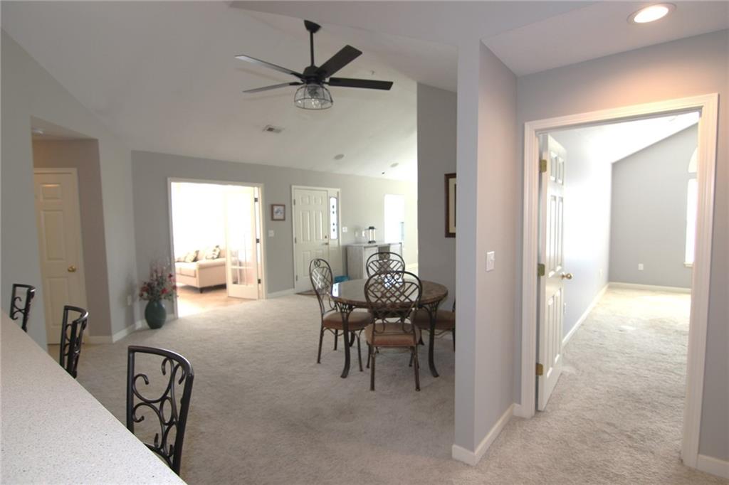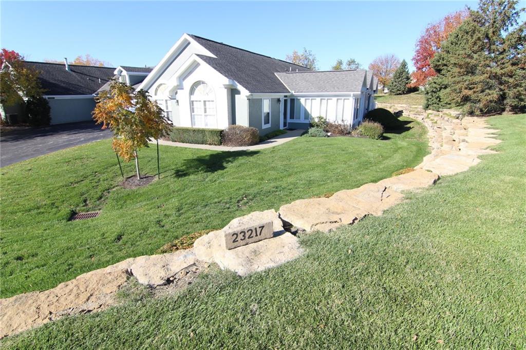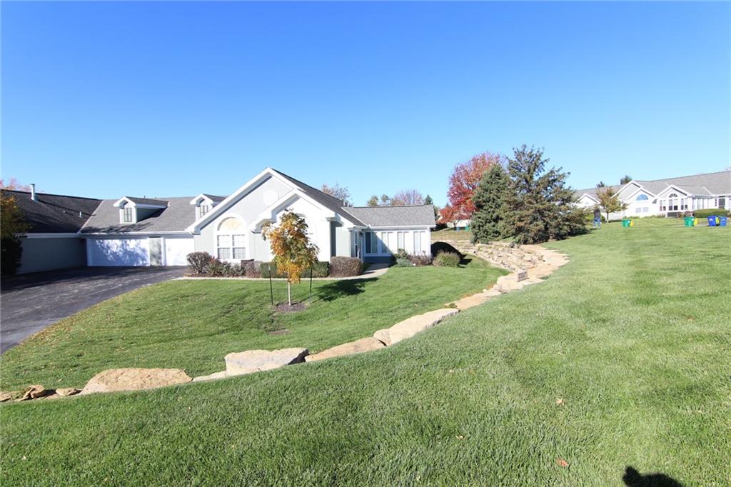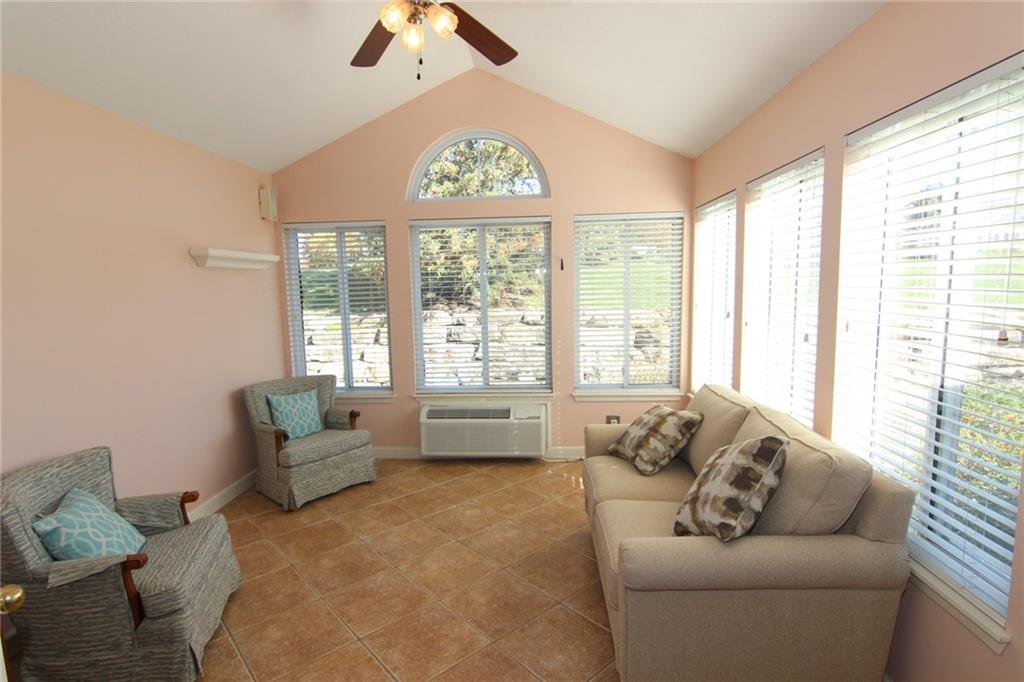 One-Level Living in this Charming Patio Villa! Well maintained 2 bedroom, 2 bath Ranch with vaulted ceilings throughout and a cozy gas fireplace. The kitchen has been updated with beautiful quartz countertops and includes a pantry with pull-out shelving, perfect for keeping things organized and within easy reach! Spacious primary bedroom and bath that includes a double vanity, walk-in closet and walk-in shower with grab bar. You'll love the bright sunroom with its own heating and A/C, perfect for relaxing in any season. Maintenance free so you have time to enjoy all the amenities this community has to offer!