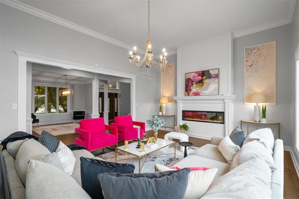 Spend New Years in this beautiful Home! PRICED BELOW APPRAISED VALUE, this home is more than a rare find- A glowing lake at sunset becomes the backdrop of everyday life here—captured through walls of windows in the great room, kitchen, and primary suite. Every space was designed with intention, framing the water as the home’s most breathtaking feature. Set on two generous lots at the end of a quiet cul-de-sac, this property lives like a private lakeside retreat with over 300 feet of pristine shoreline. The jewel-box kitchen sparkles with a mother-of-pearl backsplash, custom soft-close cabinetry, and expansive island. Open living and dining spaces make entertaining effortless, with a cozy fireplace, automated Lutron shades, and seamless flow to the water’s edge. The primary suite offers a true sanctuary—complete with its own fireplace, serene lake views, and a spa-like bath. The walkout level adapts beautifully to the way you live, offering its own kitchen area and flexible space for movie nights, an art studio, a home gym, or a private in-law suite. And just steps away, neighborhood amenities—pool, tennis, basketball—make lake life feel even more complete. Truely an exceptional opportunity to experience lake living at its most elevated, elegant, and deeply peaceful.
