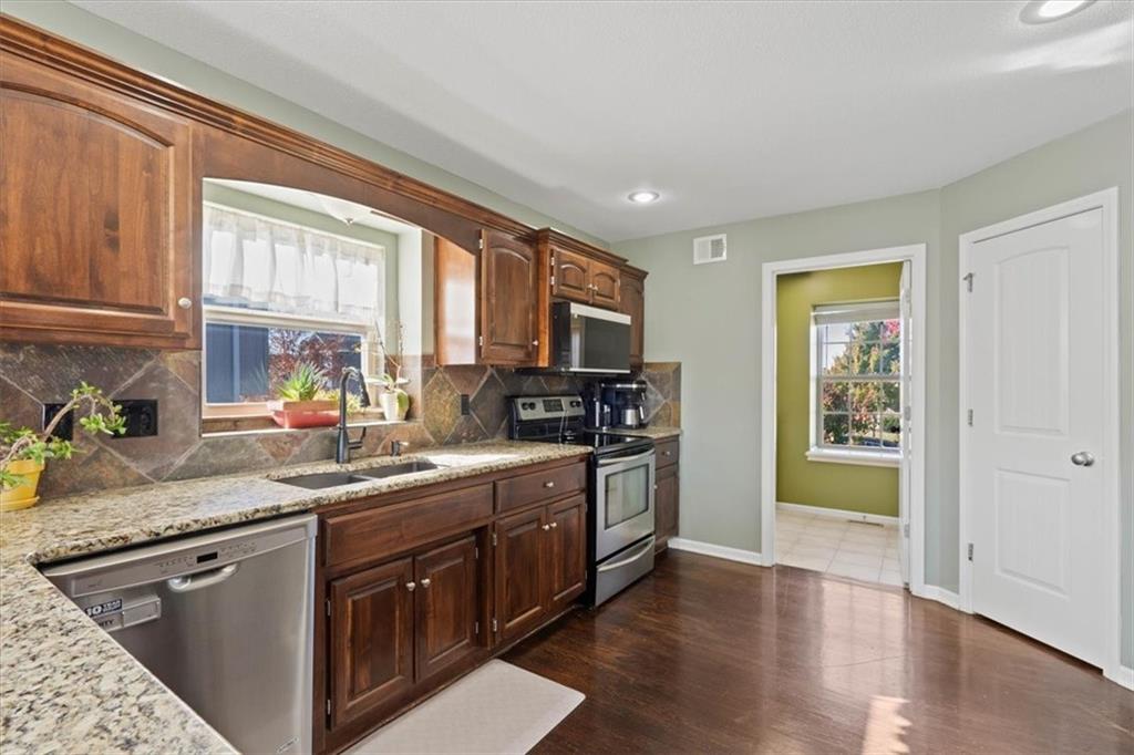 **Be Home for Christmas! **BACKS UP TO GREENSPACE AND WALKING TRAIL! This stunning 4-bedroom, 3-bath, 2,184 sq. ft. split-entry home is packed with upgrades and style — a total showstopper inside and out! From the eye-catching stone and stucco exterior to the beautiful trim work, iron spindles, and 3-car garage, this home was built to impress. Step inside and fall in love with the bright, open floor plan, gleaming hardwood floors, and custom details at every turn. The gourmet kitchen features rich alder cabinets, Frigidaire oven, Samsung Refrigerator and Microware, a walk-in pantry, and plenty of space to entertain this holiday season. The spacious master suite feels like a retreat, complete with a corner whirlpool tub and a luxurious bath you’ll never want to leave. Downstairs, the finished lower level offers endless possibilities — use it as a 4th bedroom, guest suite, or massive great room for movie nights and gatherings. Best of all — the backyard opens to greenspace and a walking trail! Enjoy peaceful views, extra privacy, and easy access to the community lake for fishing, club house for rent and pool just steps away! Upgrades everywhere. Location you’ll love. Lifestyle you deserve. Make this home yours — and be celebrating the holidays in style!