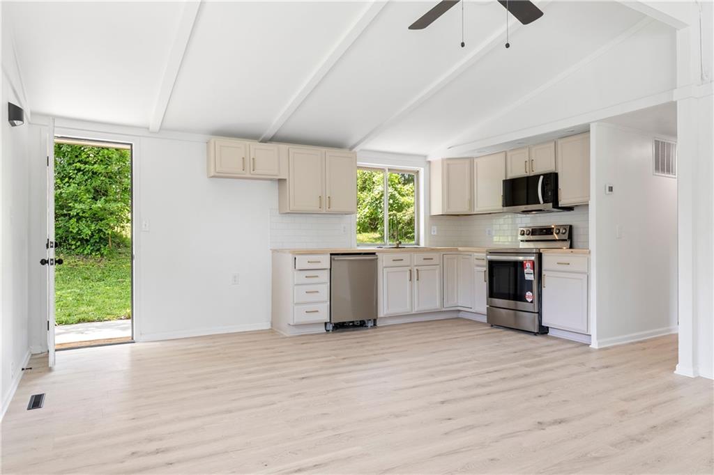 Charming, Completely Remodeled Home – A Must-See! Step into this beautifully renovated home, where modern updates meet comfort and style. Featuring brand-new luxury vinyl plank (LVP) flooring throughout, the home offers an inviting, low-maintenance finish that flows effortlessly from room to room. This perfect layout includes a garage and plenty of room in the basement, perfect for storage or future expansion. Enjoy the peace of mind that comes with a new HVAC system and brand-new appliances in the kitchen. Outside, a beautiful deck awaits, ideal for relaxing or entertaining. Seller financing available for qualified buyers. Lease option available.
