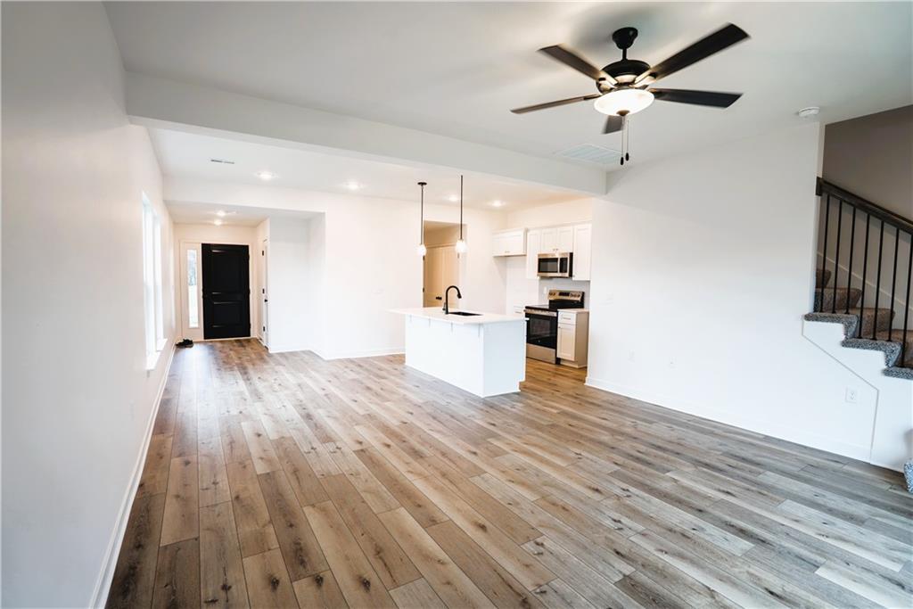 This beautiful 3-bedroom, 2.5-bathroom new construction home showcases a sleek modern design and a well-equipped kitchen featuring a large island with quartz countertops, stainless steel appliances and a spacious walk-in pantry. The main ensuite includes vaulted ceilings, a generous walk-in closet with built-in shelving, and a stylish attached primary bath. Enjoy convenient ground-level access to the rear patio and fully landscaped yard—perfect for pets, entertaining, and family activities. Spacious two-car garage offering plenty of room for parking and storage. Home is currently under construction; pictures are of a completed build and similar floor plan. Finishes and colors may vary. Estimated completion date is Nov 15.