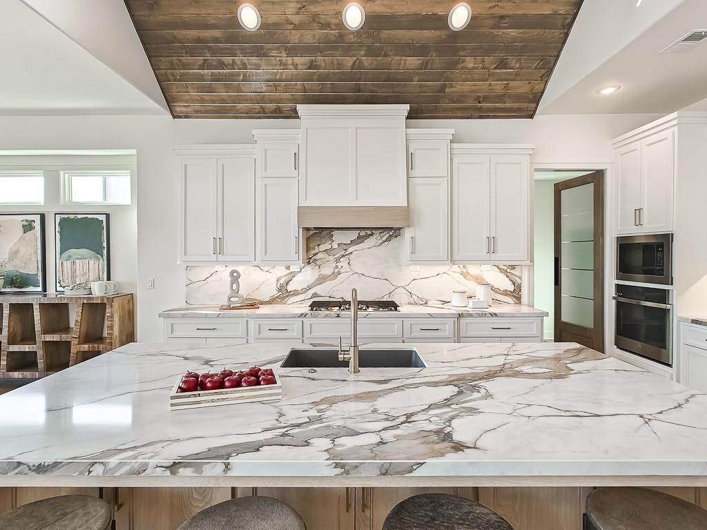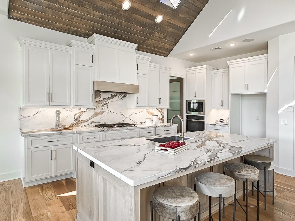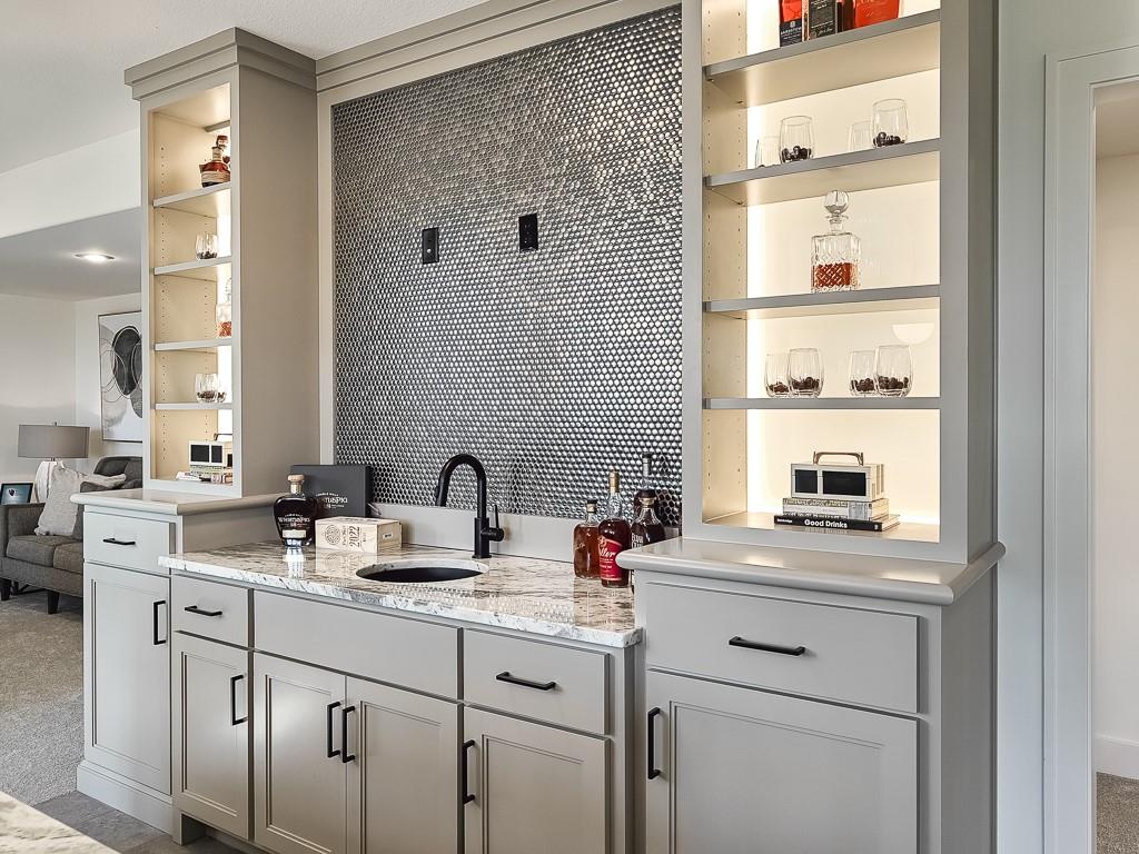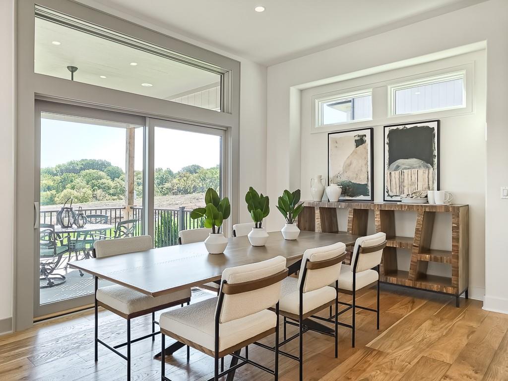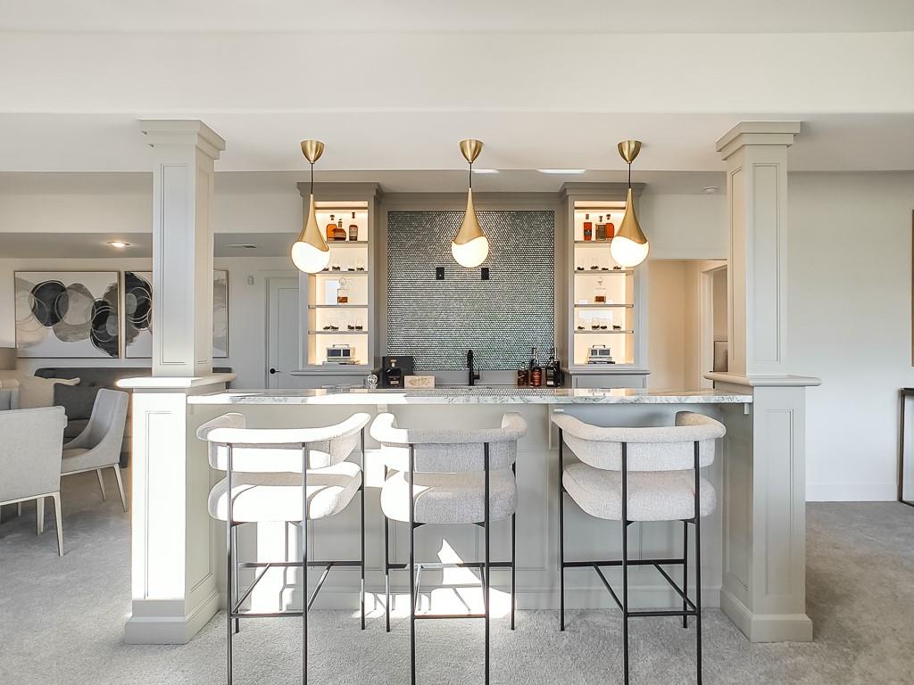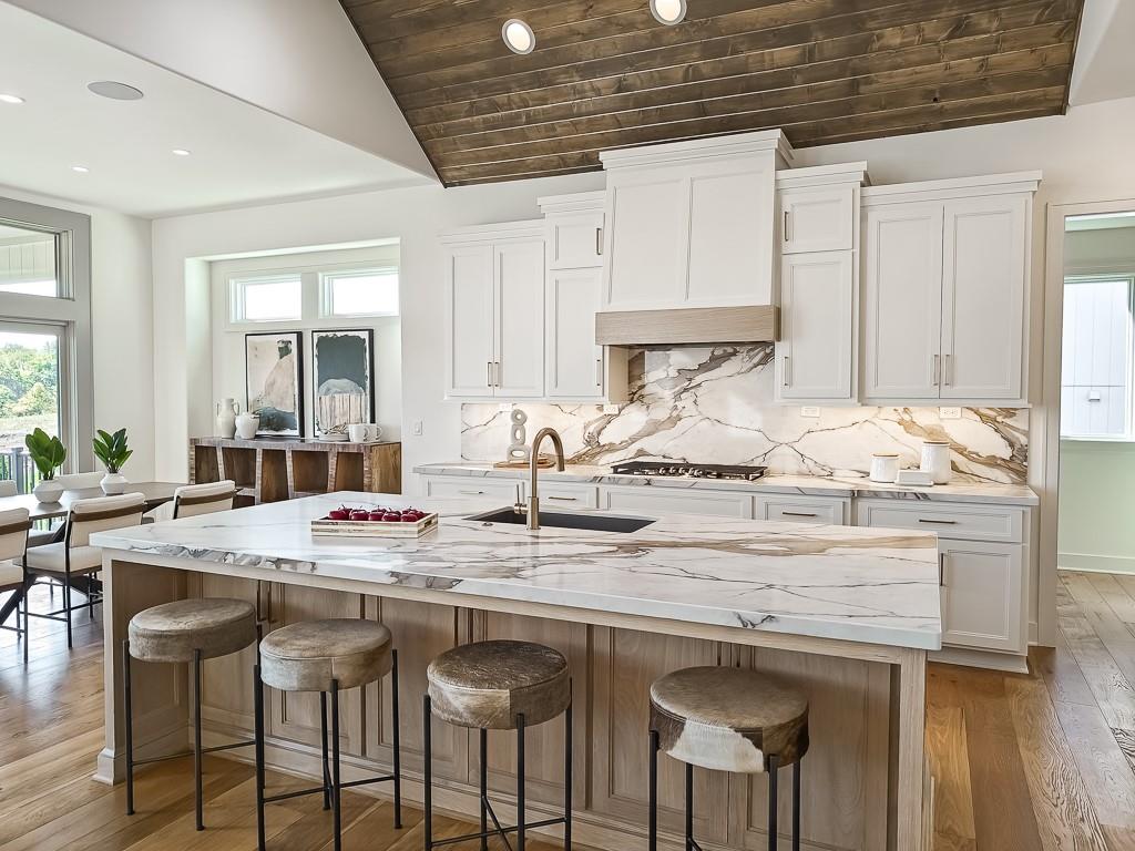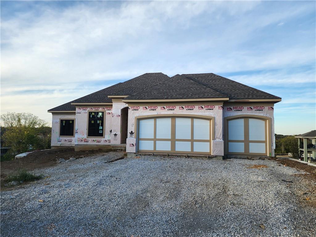Expected Spring 2026 completion, welcome to the gold award-winning Brookridge IV by the esteemed Don Julian Builders. Located on a quiet cul-de-sac on lot 19, backing to green space with a dramatic view to the horizon, this reverse 1.5-story plan in Bristol Highlands Estates blends luxury with livability. Enter through double doors into a dramatic foyer and great room with 2-story windows, vaulted wood-beamed ceiling, and a striking stone fireplace to impress from the moment you step inside. The kitchen shines with an oversized island, 5-burner gas cooktop, custom hood, vaulted ceiling with skylights, and a massive walk-in pantry with prep space and second fridge. Just off the dining area, step onto the covered deck—perfect for morning coffee or unwind in the evening with a view to the horizon. The main-level primary suite offers a spa bath with dual vanities, soaking tub, tiled shower, and a walk-in closet that connects to the laundry. Two more bedrooms, a full bath, and a powder room for guests round out the main floor. Downstairs, the finished walkout basement is built for fun with a media wall, rec room, game space, spectacular bar, plus 2 more bedrooms with private bathrooms that walks out to a patio for another outdoor entertaining space. Nestled in the rolling hills of Shawnee, Bristol Highlands offers stunning views and a peaceful setting. Enjoy top-rated De Soto schools, shopping, dining, and outdoor recreation with nearby parks, trails, Shawnee Mission Park, and multiple golf courses. It’s the perfect balance of convenience and natural beauty. Photos and virtual tour are of a similar model home.