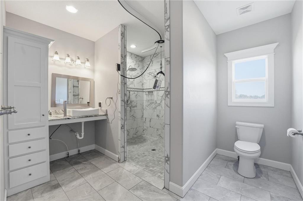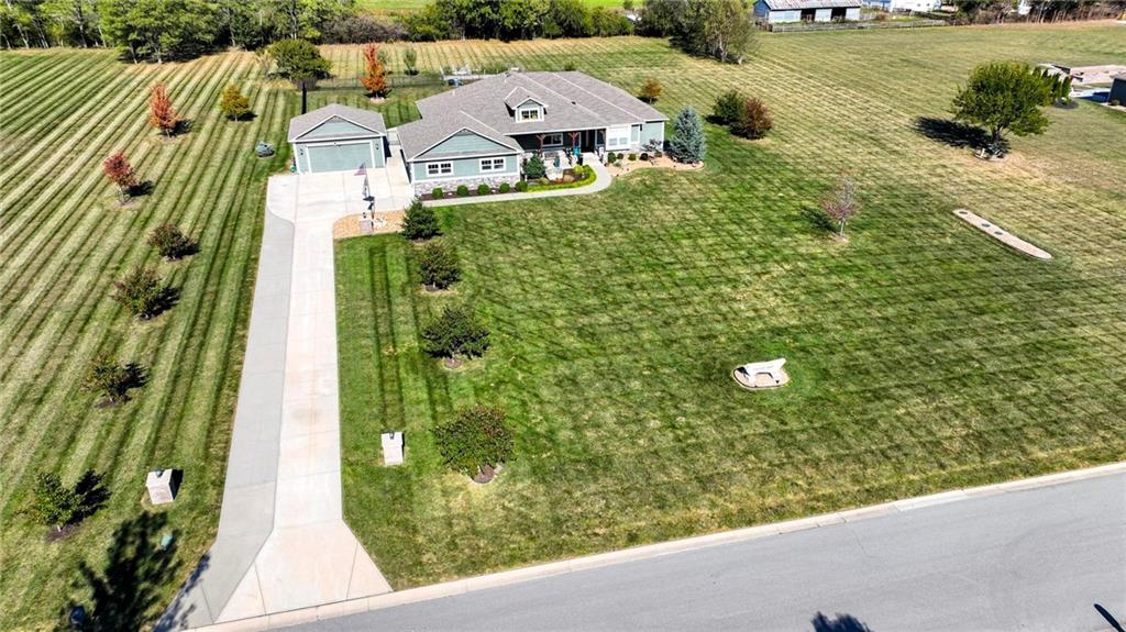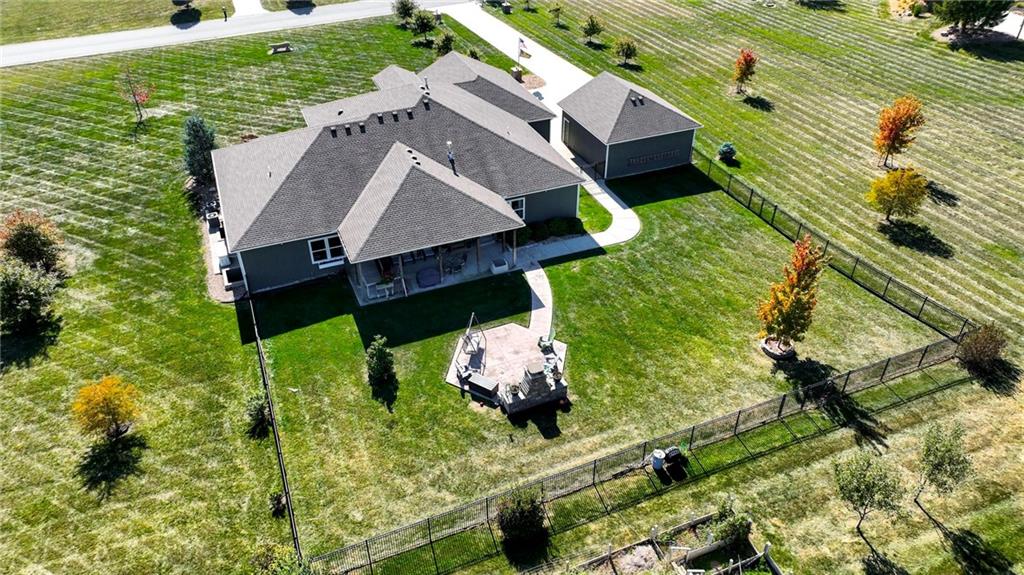 Custom home is zero entry, fully handicap accessible, with elevator! Beautiful ranch has over 3000 sqft main level. Deep covered front porch greets you, front door opens to lovely open plan. Wood floor through entire main level living area, great room with wall of windows overlooking backyard & door out to covered patio, open patio with outdoor fireplace, fenced yard & garden with raised beds & fruit trees. Kitchen is fantastic with huge center island, custom cabinets with pullout pantry storage, large full extend heavy duty drawers, gas cooktop with hood, farmhouse sink, 7x8 walk-in pantry! All halls are 4' wide, 5' turnarounds planned throughout the home, for easy wheelchair accessibility. Large laundry has tons of built ins, room for full size fridge/freezer w/water line. Bedroom or office down hall, primary suite is a true retreat at back corner of home, with door out to patio. Luxury bath has huge fully tiled shower, walk-in closet, dbl vanities & oversized jetted tub. Opposite side of home is additional guest suite with private bath, sitting area or family room with sliding door. 3rd private suite has door out to patio, large closet, Ergolet Luna lift runs on ceiling from bedroom, through bath to wheelchair accessible shower - fully tiled, multiple heads - walk-in closet. Elevator or wide stairway to lower level family room has 2 ceiling fans & ample space for media or games. 2 large bedrooms have walk-in closets & share hall bathroom. HUGE unfinished space remains with additional stub for full bath. Side entry garage is 33'wide, 28'deep, 10' ceilings. 2 car detached garage is 25 x 21, 10' ceiling & stubbed for bathroom. Irrigation system around home.