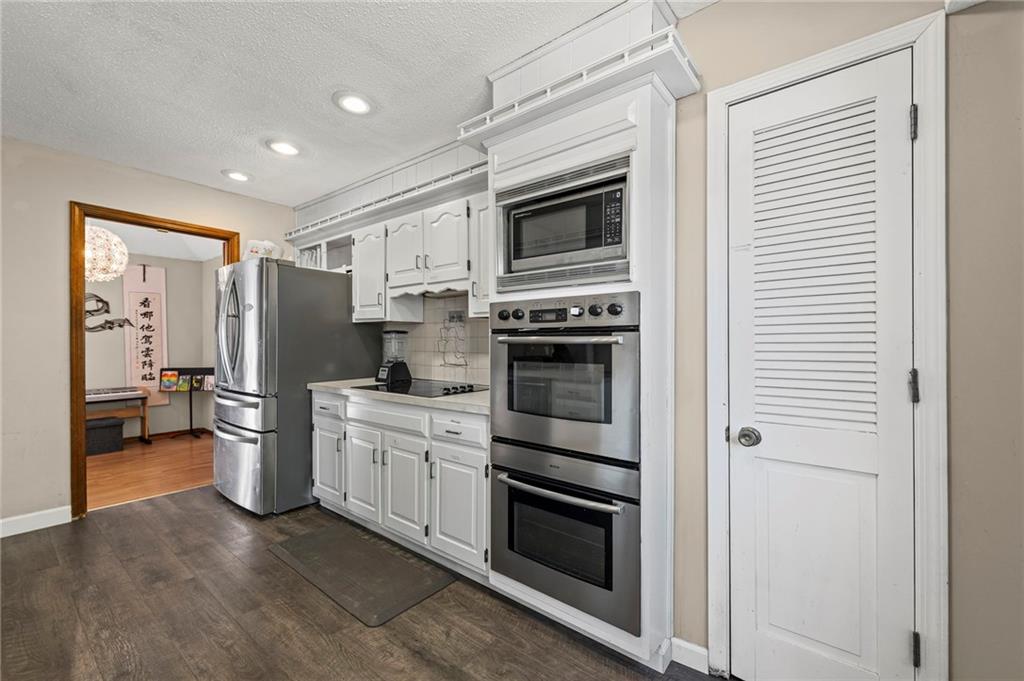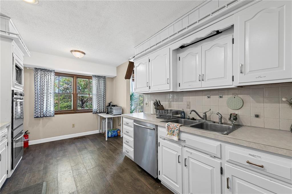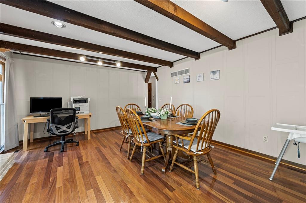 A rare gem in Terrace Manor you don’t want to miss! Situated on a quiet cul-de-sac, this darling home boasts gorgeous storybook-like stucco and stone facade. Extended driveway and large concrete patio on the side and rear of the home provides plenty of parking space for your family and guests. Large fenced backyard gives your family lots of space to relax and entertain. Inside the home, you are greeted with soaring vaulted ceiling and gleaming wood flooring. Music room between living room and kitchen can also be used as dining or kids play area. Large white kitchen boasts s/s appliances, double ovens, pantry, and ample cabinetry. Gather around the cozy fireplace on those cold winter nights in the spacious French country style hearth / family / dining room and create lasting memories for many years to come. Main level also features 3 cozy bedrooms and 2 full baths. Finished lower level offers a rec/family room with wet bar, and two bonus rooms that can be used for guests or as home office. You will also find laundry facility and storage space on this level. The 2-car garage is separated by wall and can be used individually. Other upgrades and features include new exterior paint, 4-year-old water heater, new master shower wall tiles, new tiled fireplace, new sump pump and water proofing system. This home's central and convenient south KC location allows for fast access to highways and easy commute to all major areas of the metro, minutes to Grandview, Lee's Summit, and Leawood. 15 minutes drive to South Overland Park, and 20 minutes drive to downtown KC/Plaza area. This home is a must see!