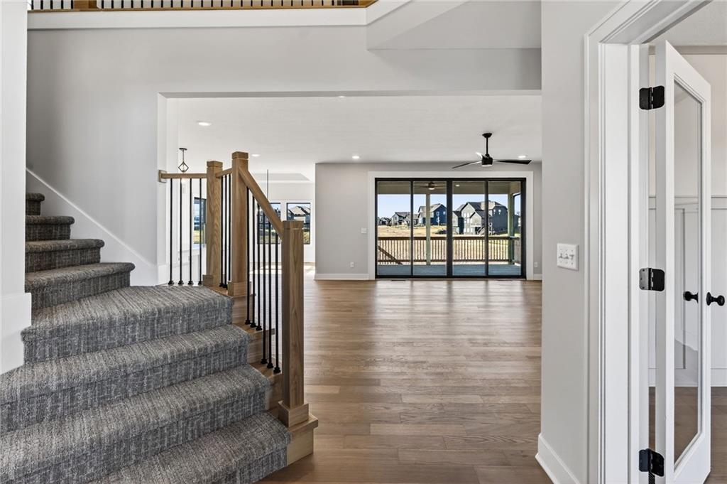 Introducing The Linden by Hearthside Homes, a stunning 2-story design that blends craftsmanship, comfort, and modern style. Located in Davidson Farms, this home sits on a desirable walkout lot that backs to greenspace, offering added privacy and scenic views. A spacious garage includes an extra 10x13 storage area—perfect for all your gear and hobbies. Step into the grand two-story foyer where a den and open staircase welcome you inside. The great room features custom built-ins beside the fireplace and an oversized slider leading to a large 12x20 covered deck overlooking the backyard includes stairs down—ideal for relaxing or entertaining. The designer kitchen showcases painted custom cabinetry, a large island, quartz countertops, built-in wall oven, cooktop, wine fridge, and a generous butler’s pantry with prep space and storage. Upstairs you’ll find four bedrooms and three full baths, including a luxurious primary suite with a freestanding tub within a walk-in shower, dual vanities, and a large walk-in closet. Built with Hearthside’s signature double-wall construction, I-joist floor system, and engineered truss roof for lasting quality and comfort. Every Hearthside home includes a 12-month builder warranty, third-party inspections, a verified video sewer line scope, and professional HVAC duct cleaning—ensuring your new home is delivered in pristine, top-tier condition. Move-in ready and designed for today’s lifestyle, The Linden combines thoughtful design with enduring craftsmanship. Also features Black roof, windows, & gutters, sprinkler system. Liberty School district, Liberty High. HOA community pool, clubhouse, outdoor pavilion area, pickle ball court, 3 acre fishing pond and walking trail. Aprox. 15 minutes to downtown Kansas City and KCI Airport! Home aprox. completion date is mid Jan. 2026! Builder does pre-inspection and cleans air duct work in home prior to closing!